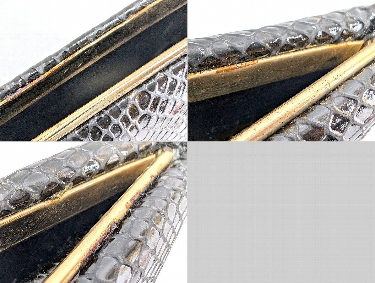 中古品です。 外観にはやや使用感があり、各所に小さなスレ、汚れがあります。 がま口の開口部やチェーンなどの金具には金属のくすみ、黒ずみ、メッキ剥がれがあります。 内装生地にはシワが寄った箇所がある他、白いひっかき傷、金具による圧迫跡があります。 写真や記載にない不具合があるかもしれませんが、現状渡しにてご容赦ください。 完全な状態をお求めの方、細かい点が気になる方はご入札をお控えください。 ノークレーム・ノーリターンでお願いいたします。 |