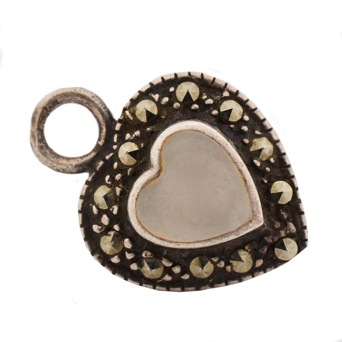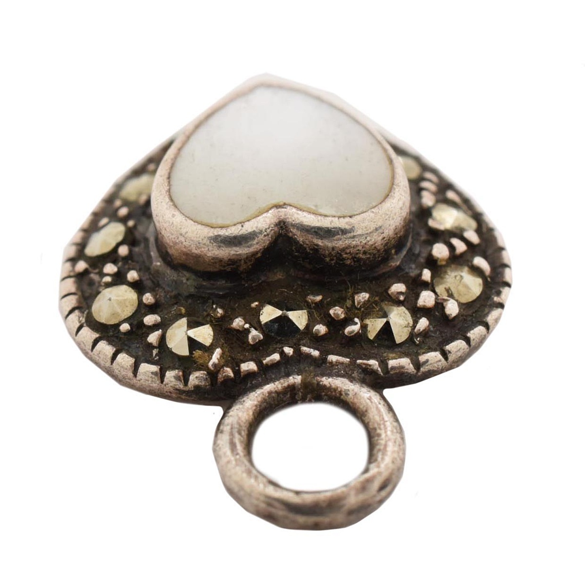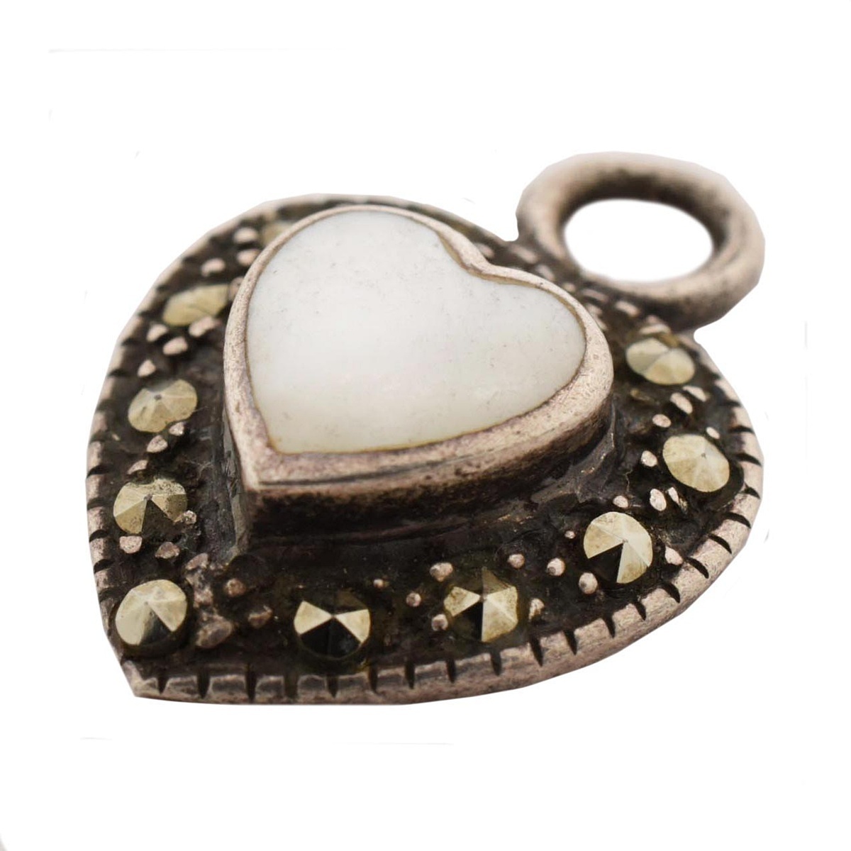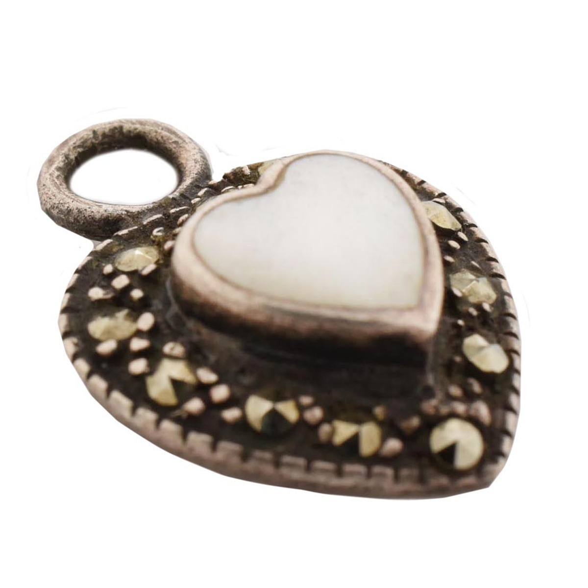 ヴィンテージ スウィートハートジュエリー 17 シェル風インレイ マーカサイト風装飾 シルバー 925 ネックレス ペンダント パフィ ハート