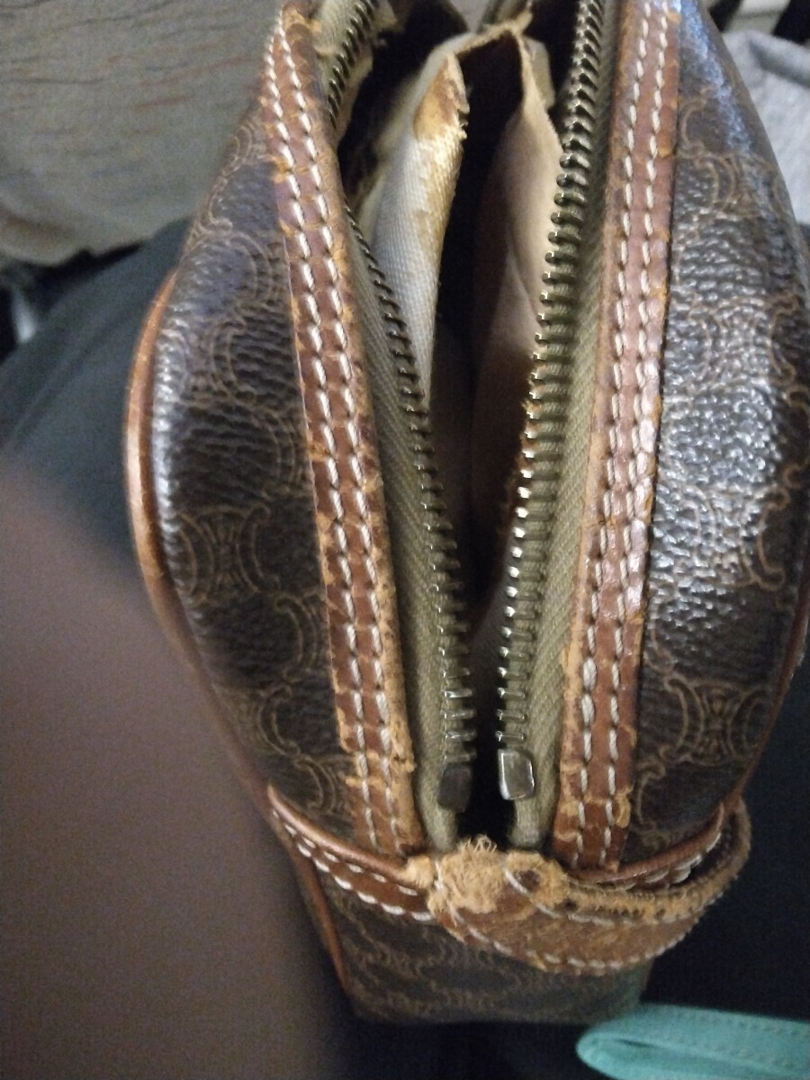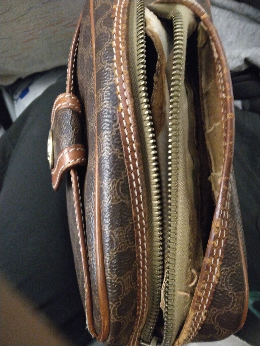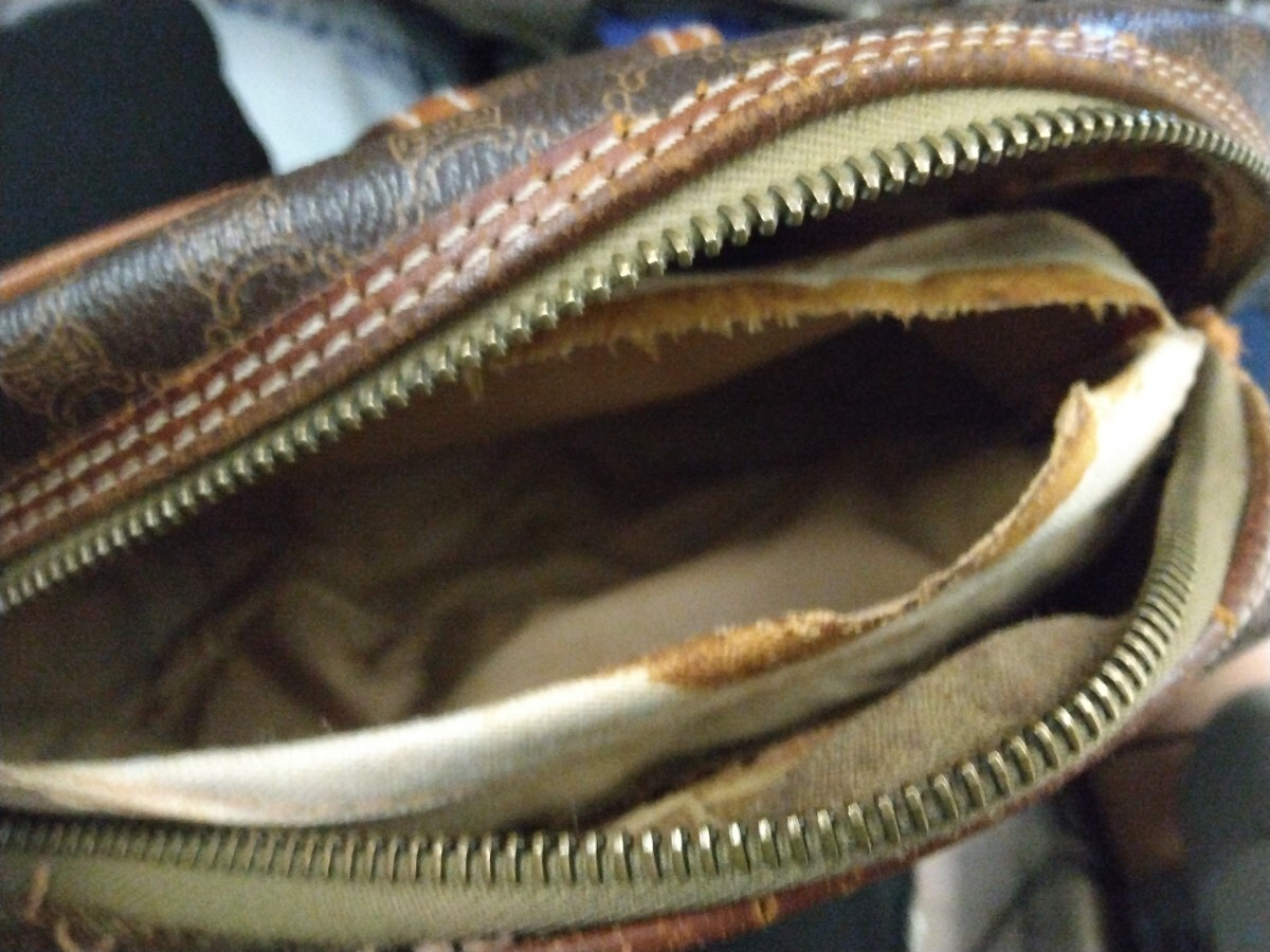 幅約21cm 高さ約15cm マチ約6cm(多少の誤差はご了承ください) 肩ひも調整可能 写真6-8枚目のように、ファスナーの片方部分に破れあり、内部の皮部分も外れてボロボロ、肩紐も破れかけて外れそうです。   感じ方には個人差がありますし、あくまで中古品、破れがなりあることはご了承くださいませ。       他にもファッション関連をはじめ、様々なジャンルの商品を出品しており、同梱可能です。