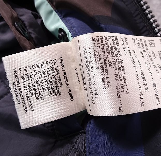 DIESEL ディーゼル ボンバージャケット 裏キルティング 中綿 ナイロン MA-1 フライト ミリタリー ブルゾン メンズ (XS) マルチカラー ●r-755