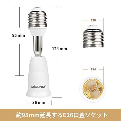 ブランド:DiCUNOカラー:4個入★白いE26延長ソケット、全長約124CMで、約9.5CM延長します。入力電圧:0-250V耐熱温度:165度使用可能電球:0w-200w。