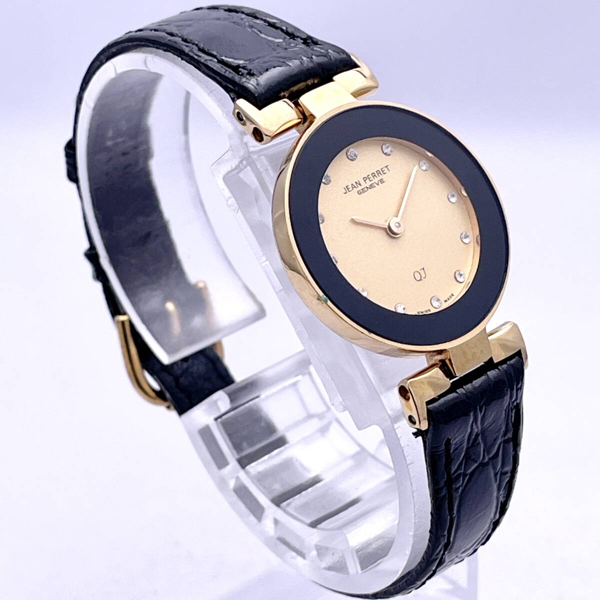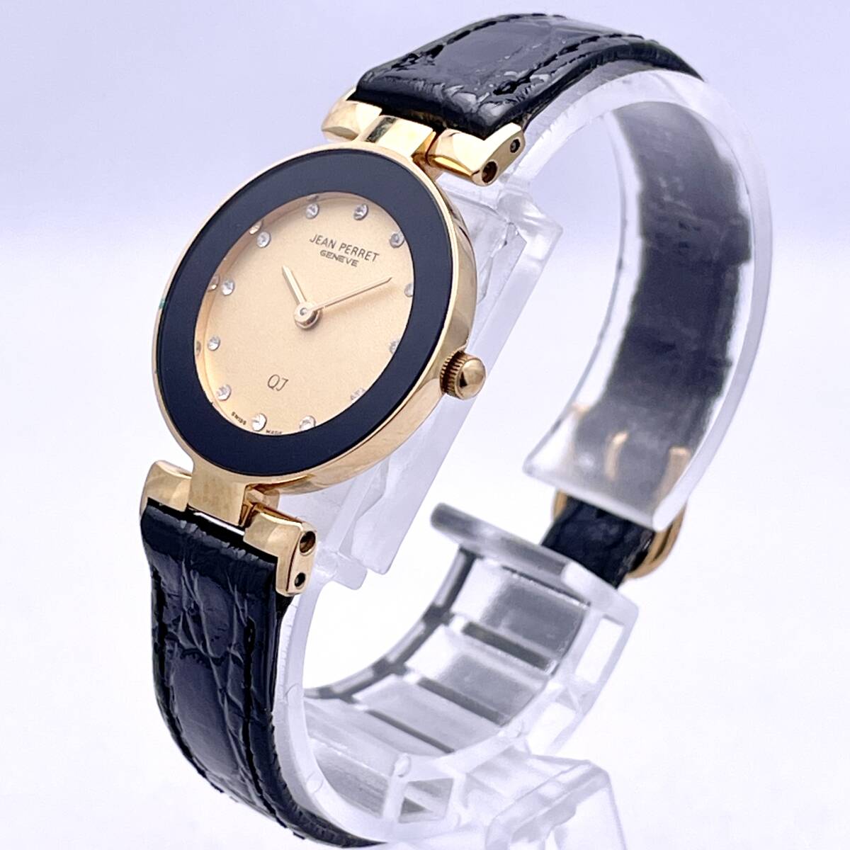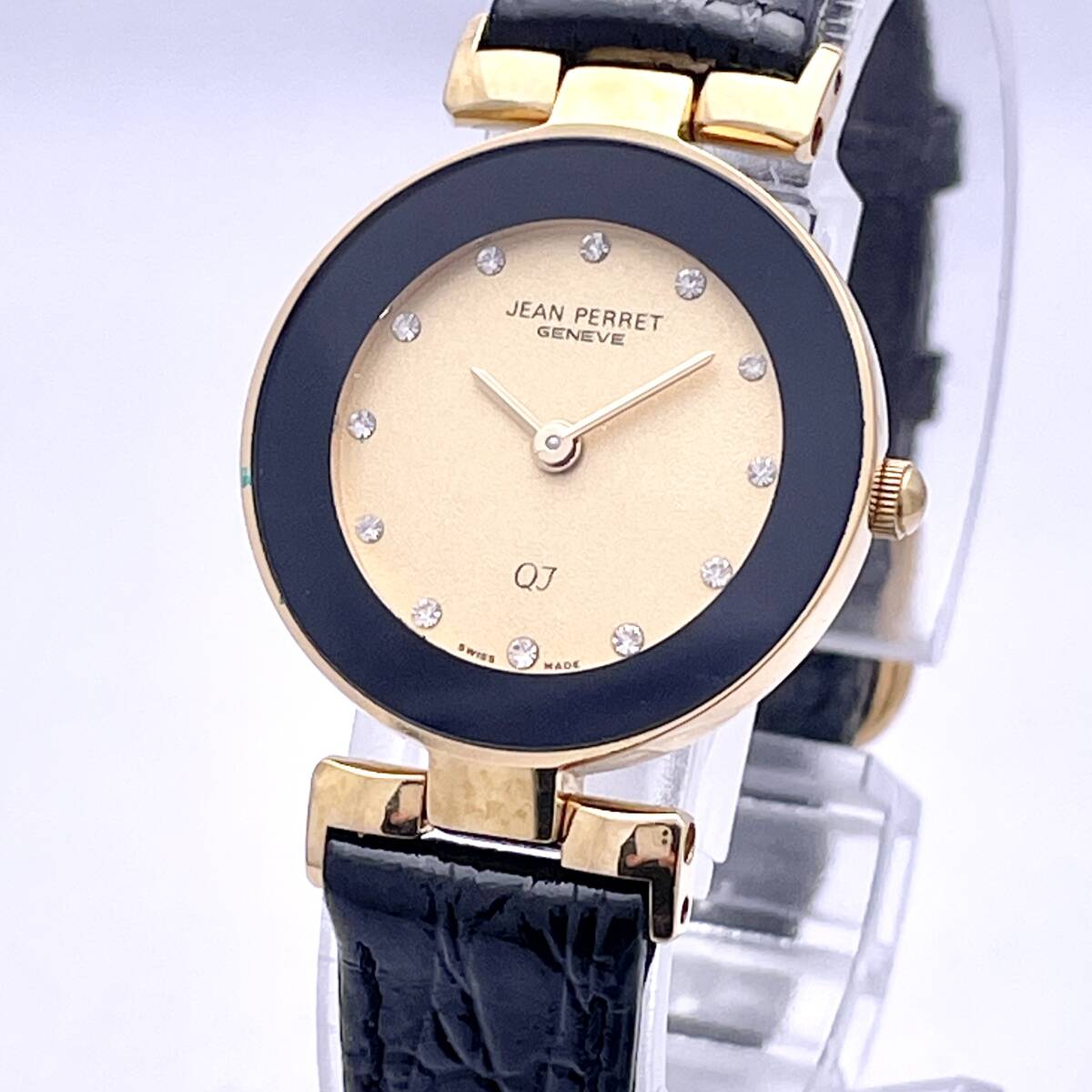 JEAN PERRET ジャンペレ QJ 腕時計 レディース ウォッチ クォーツ quartz SWISS MADE スイス製 石付き 黒 ブラック 金 ゴールド P4083