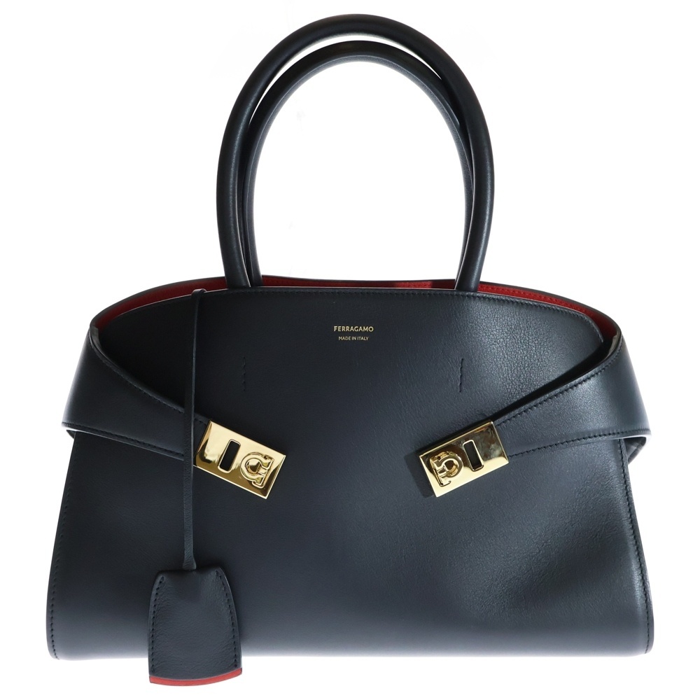FERRAGAMO フェラガモ ハグ スモール 2WAYバッグ ショルダーバッグ ハンドバッグ ブラック×レッド ゴールド金具 レザー