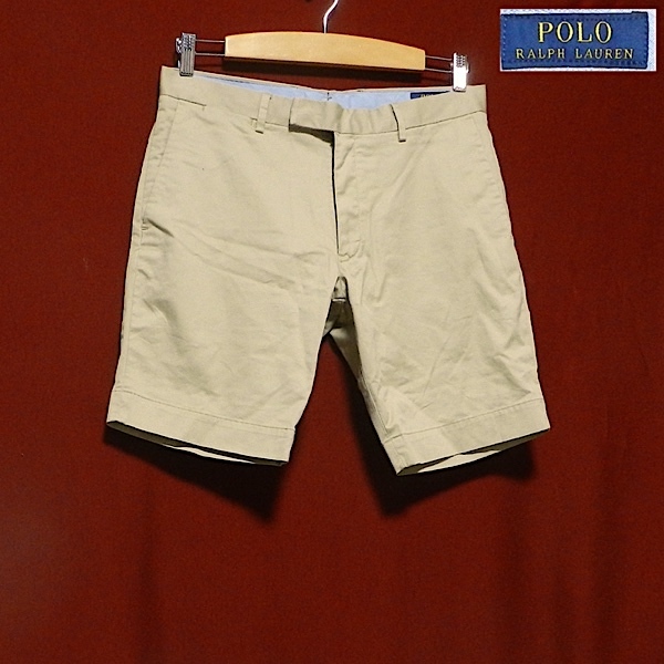 POLO ラルフローレン ストレッチ スリムフィット ショート ハーフ パンツ チノパン デザインパンツ ベージュ 32 インチ 美品