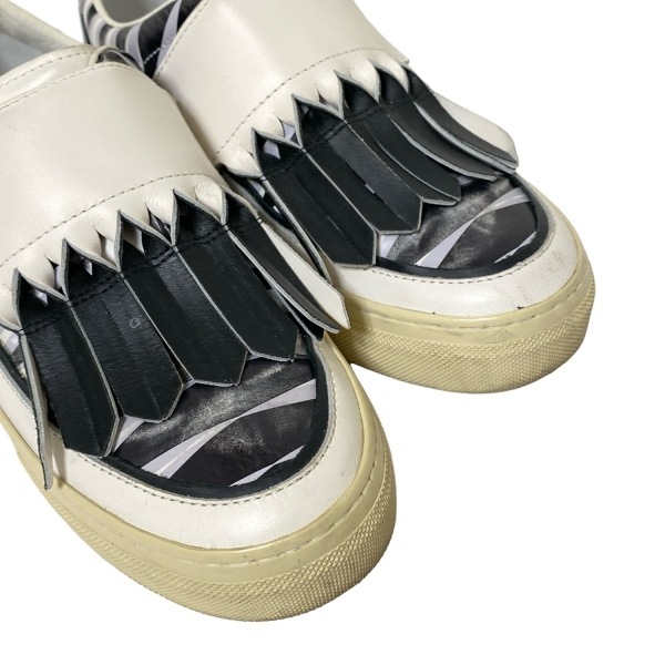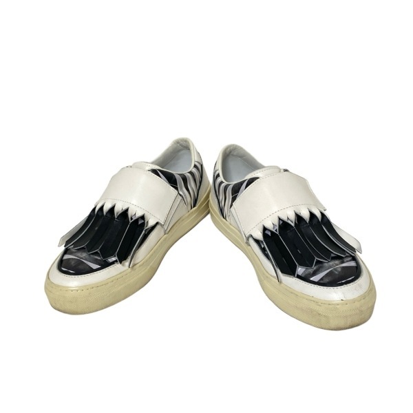 トッズ TOD'S シューズ 36 - レザー 白×黒 レディース フリンジ 靴