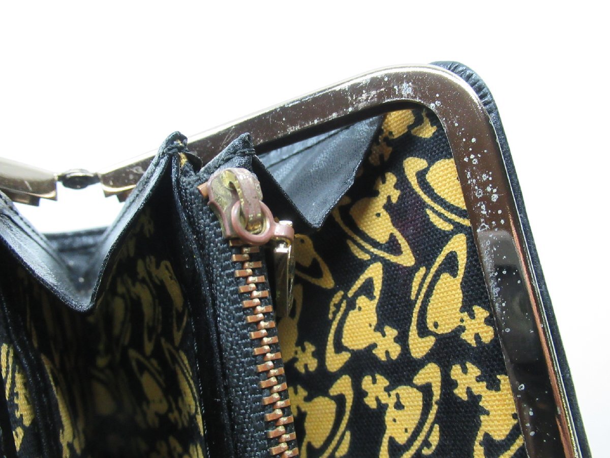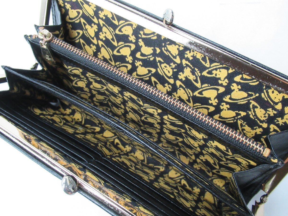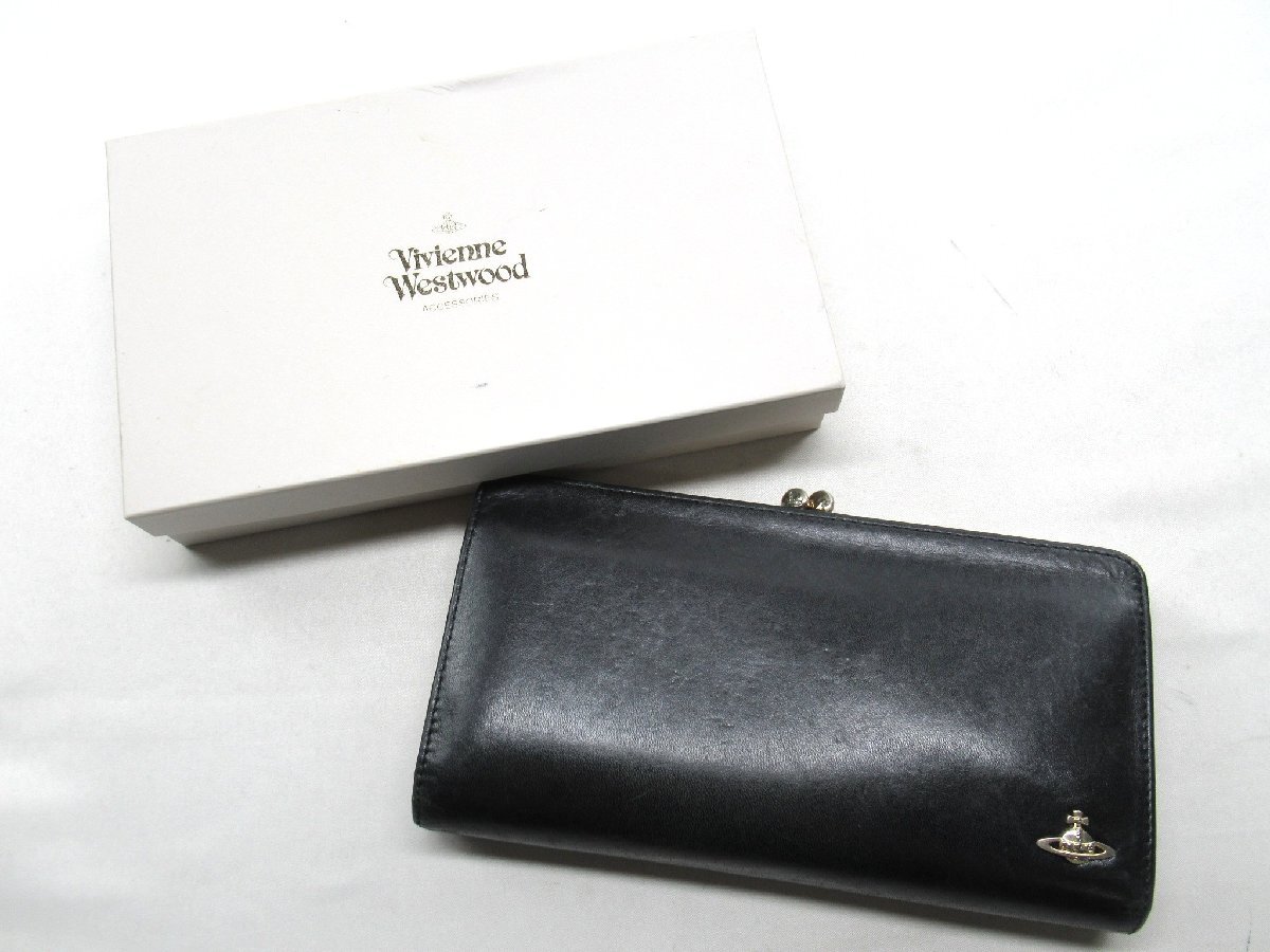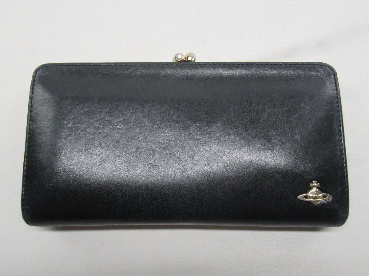 ☆【B送900円】2077 Vivienne Westwood ヴィヴィアンウエストウッド 長財布 ウォレット オーブ がま口 ブラック レザー ゴールド金具