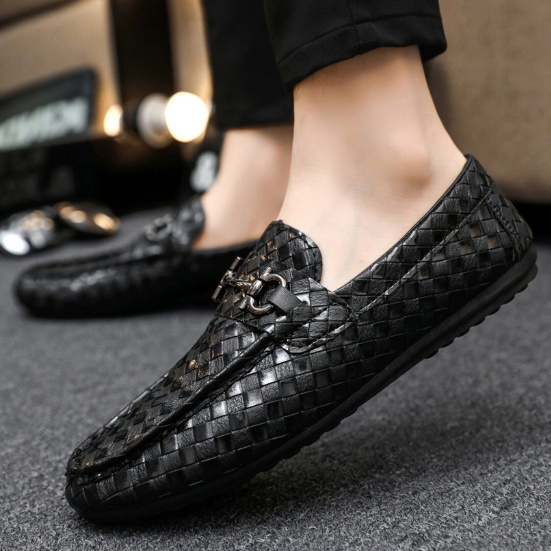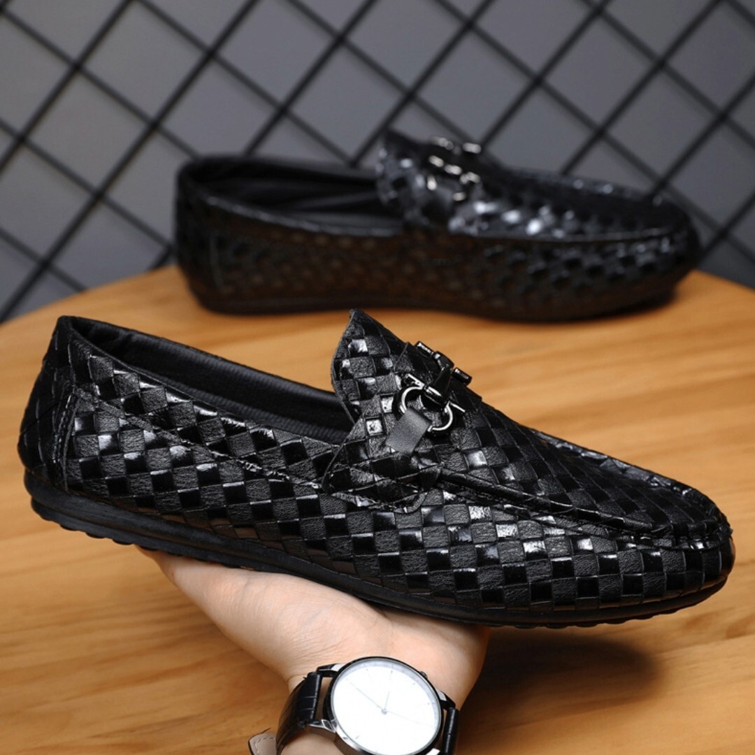 靴 sp29【 27cm 】 ローファー ローカット モダン スリッポン シューズ メンズ ドライビングシューズ 編み込み風 フェイクレザーシューズ