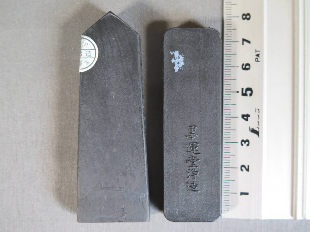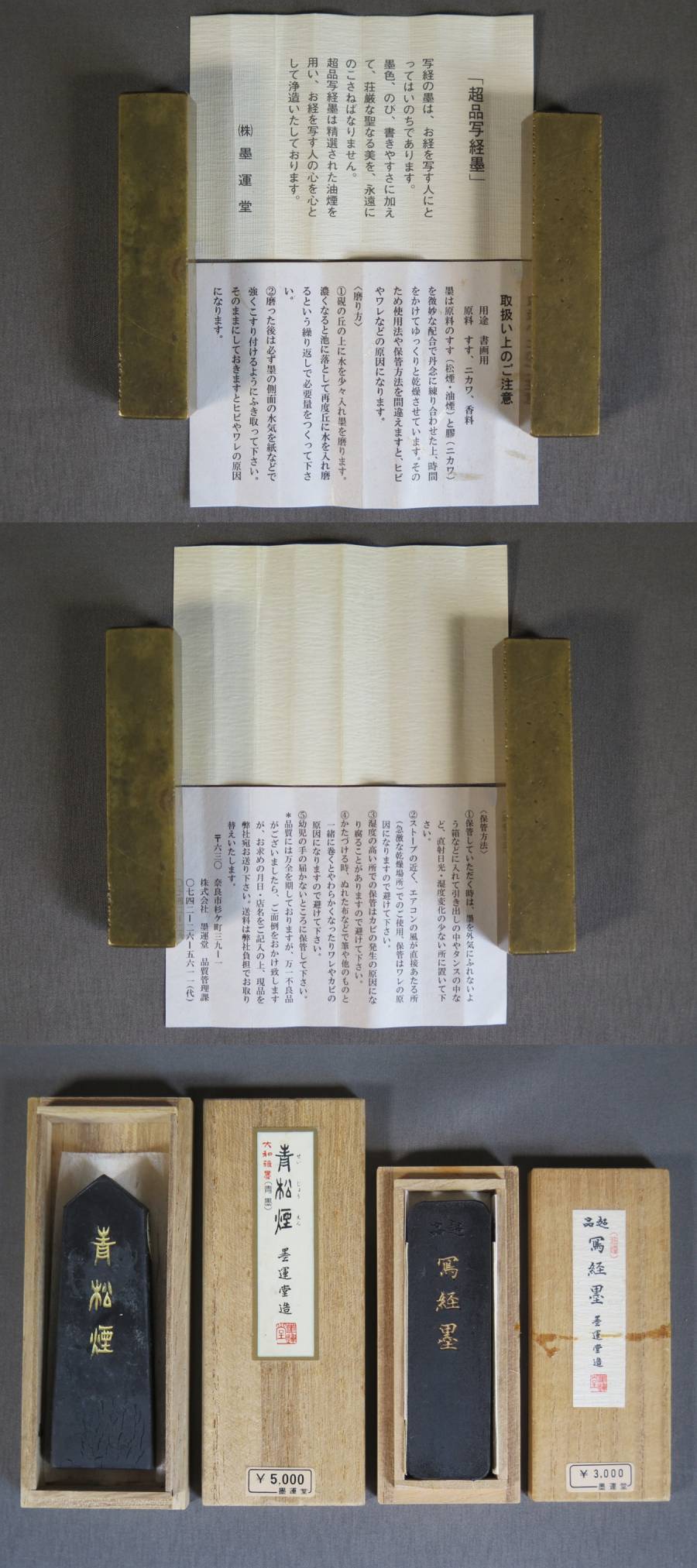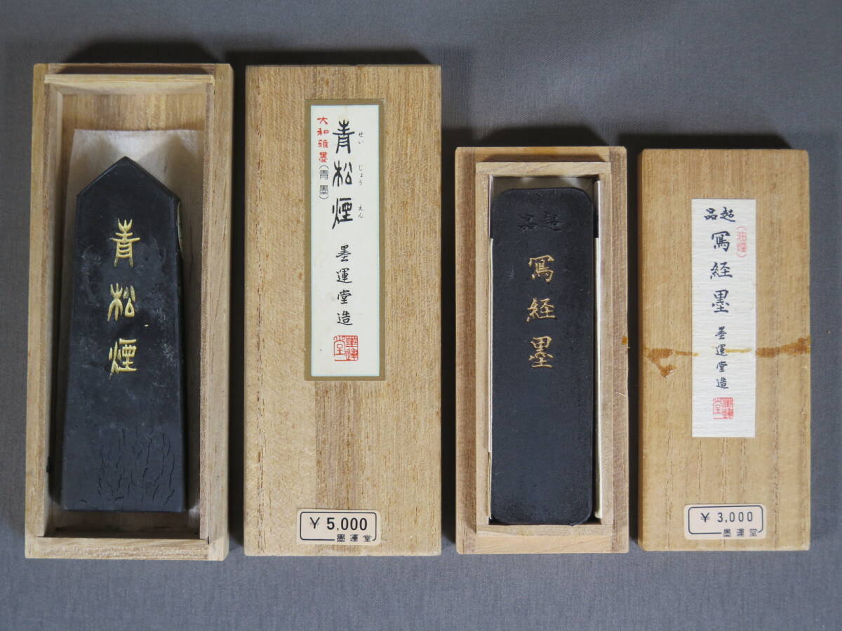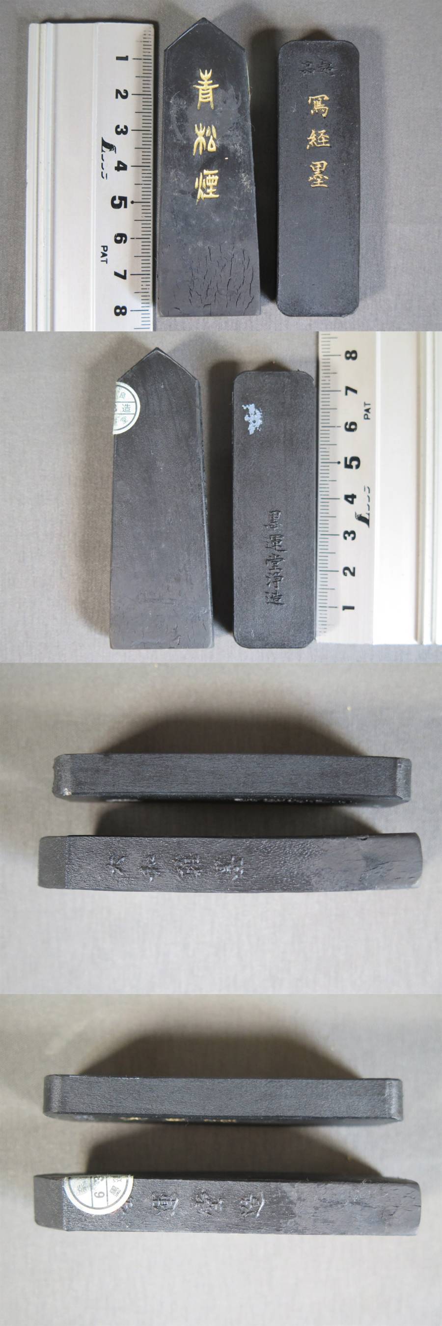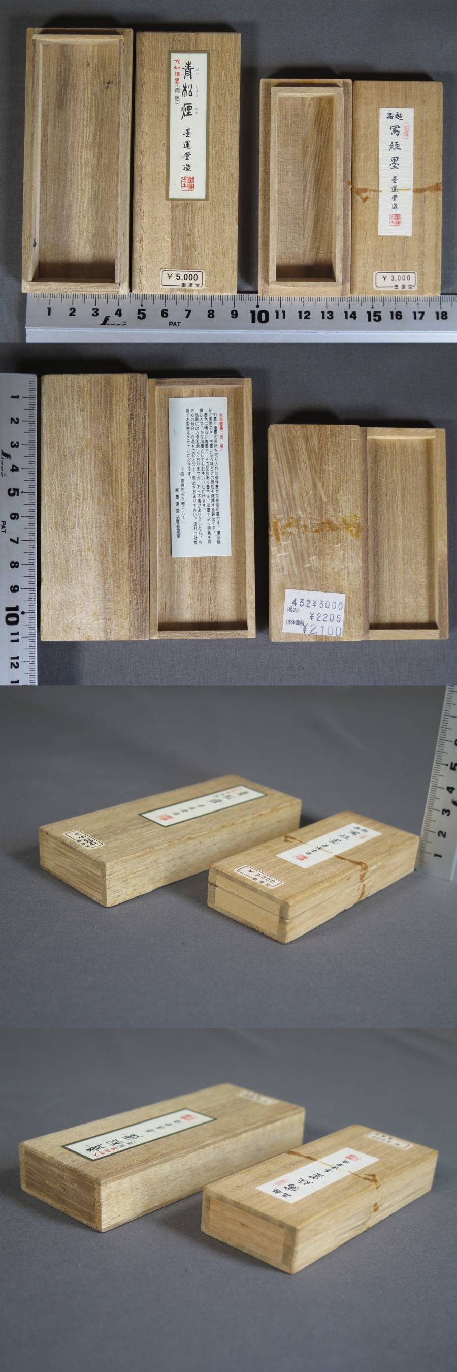 ユーズド並品~未使用品 青松煙は使用した跡があり下部が若干ひび割れています。写経墨は未使用と思われます。墨は綺麗ですが、木箱に輪ゴムが劣化したような跡がついています。どちらも保管品につき少々のイタミ・スレ・ヨゴレ・経年劣化などがあります。 新品・完全なものをお求めの方は入札をお控えください。 |