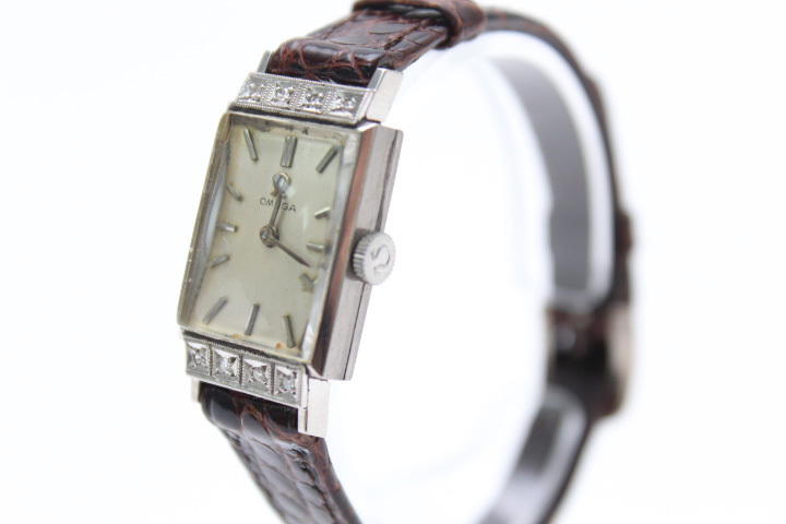 商品説明 | 【管理番号】 004145 【商品名】 オメガ OMEGA 【アイテム】 腕時計REF Cal245 【ムーブメント】 手巻き動作 動作あり 【サイズ】ケース 約11mm×18 mm (リューズ除く) 腕周り 約13cm〜16.5cmベルト幅 約8mm〜10mm 【風防】 【色】 シルバー文字盤 ブラウン 【素材】 Pt900 レザー 【付属品】 BCランク 【商品補足説明】 サビや汚れがあります | ||