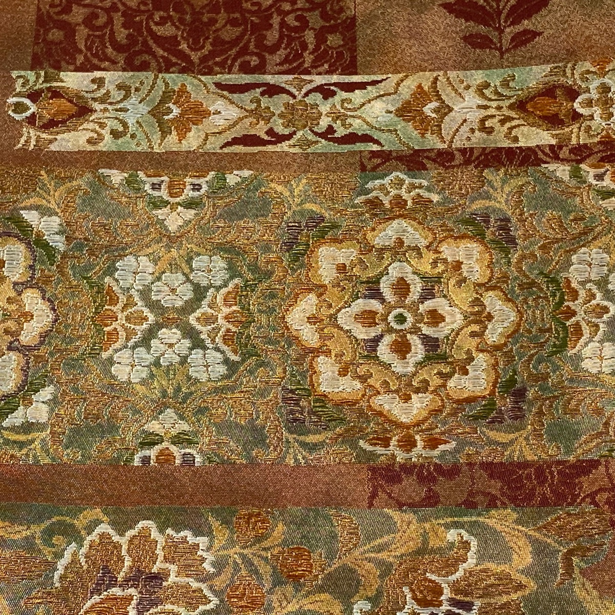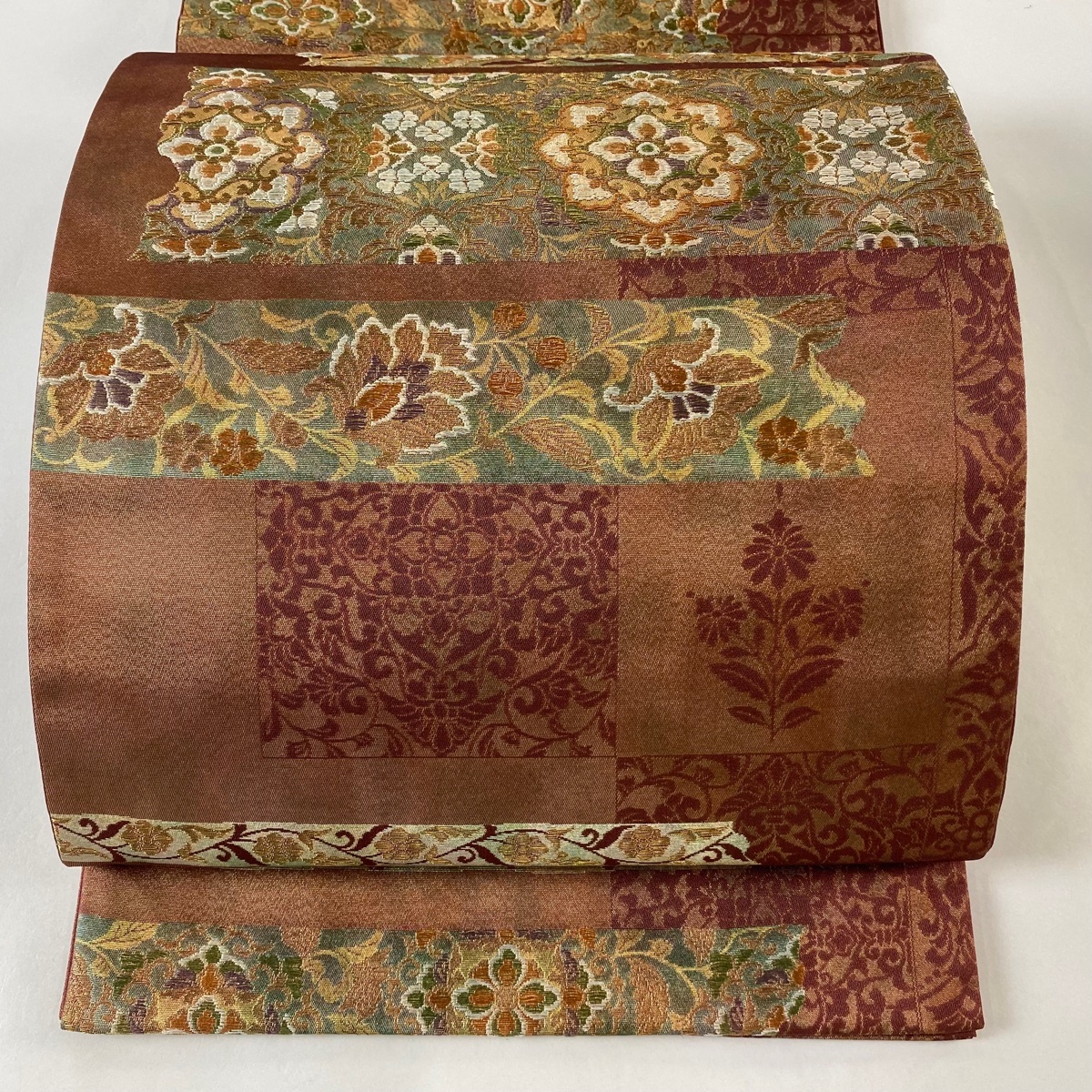 | 袋帯 美品 秀品 華文 草花 金糸 箔 茶色 六通 正絹 【中古】 |