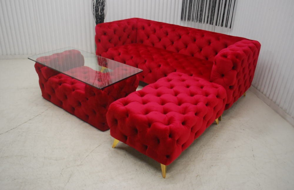 ベルベッド調ファブリック Sバネ・ウレタンフォーム・ウェービングベルト ゴールドスチール脚 テーブル 強化ガラス 一部変更がある場合が御座います。 |