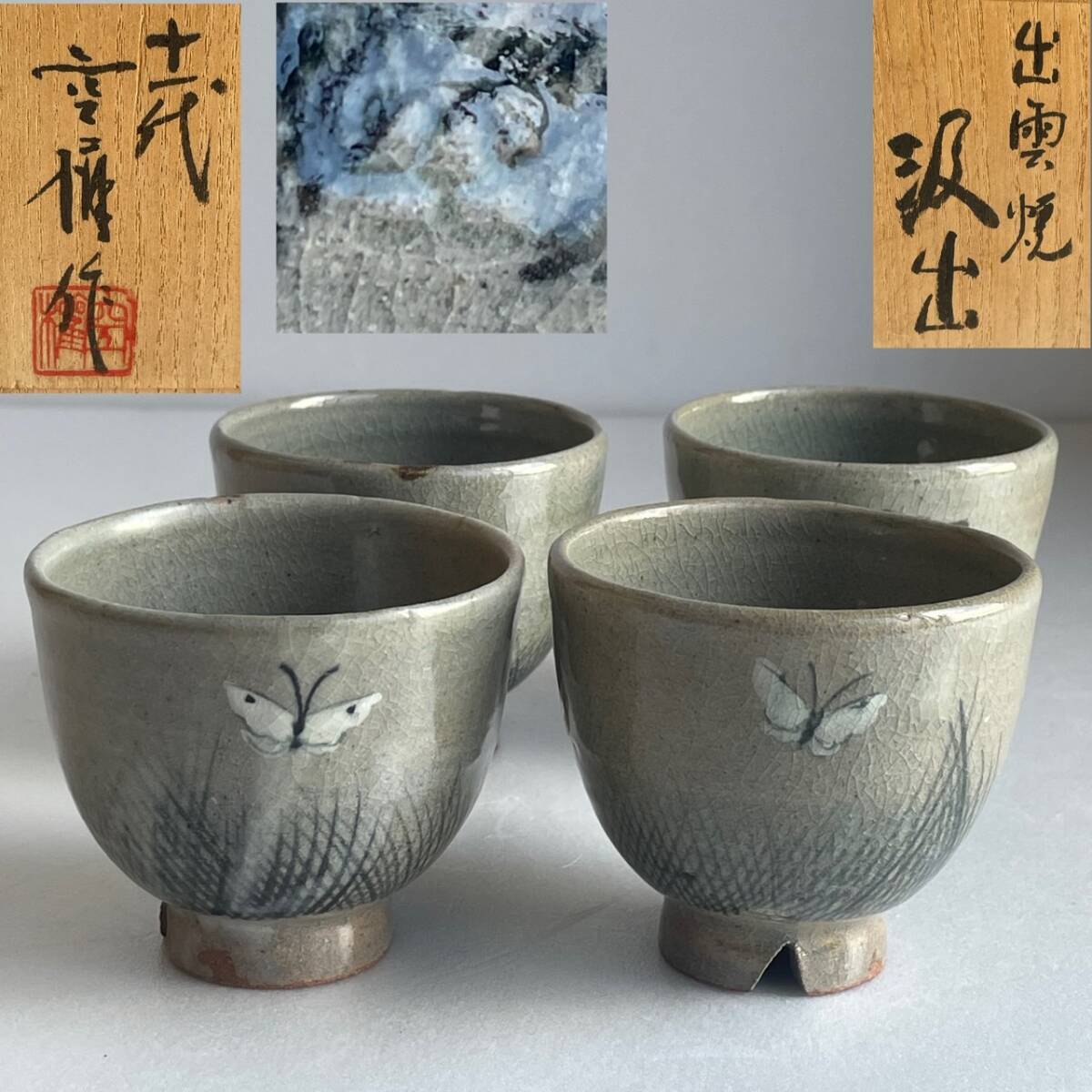 【和美】十一代長岡 空権 (住右衛門)作 出雲焼 汲出 四客 本物保証 汲出碗 汲み出し碗 煎茶道具 茶道具 40