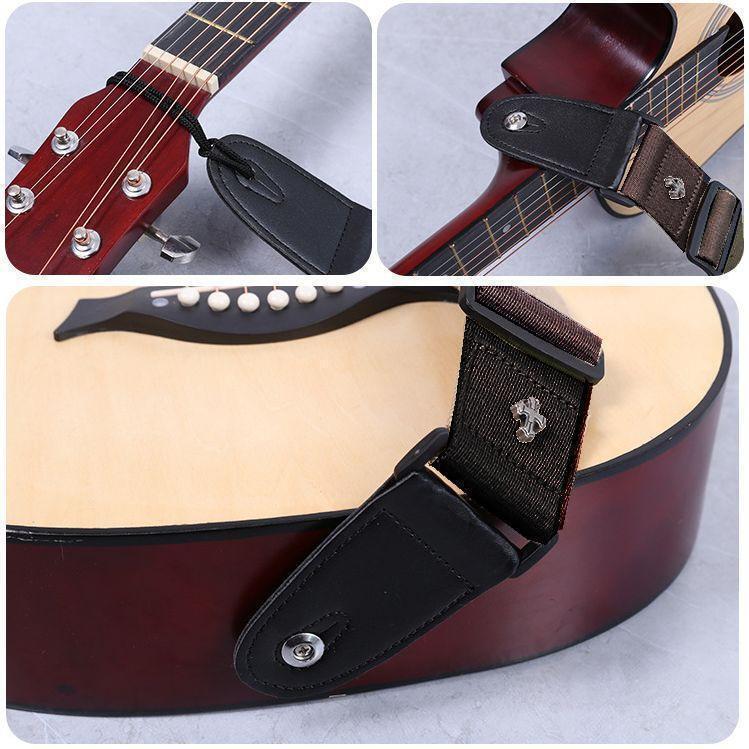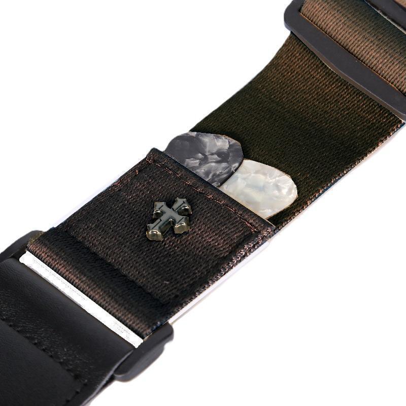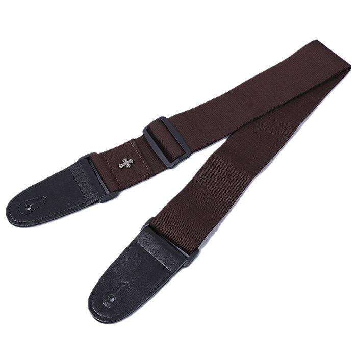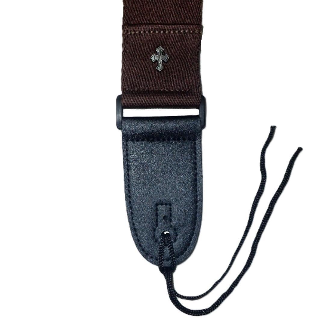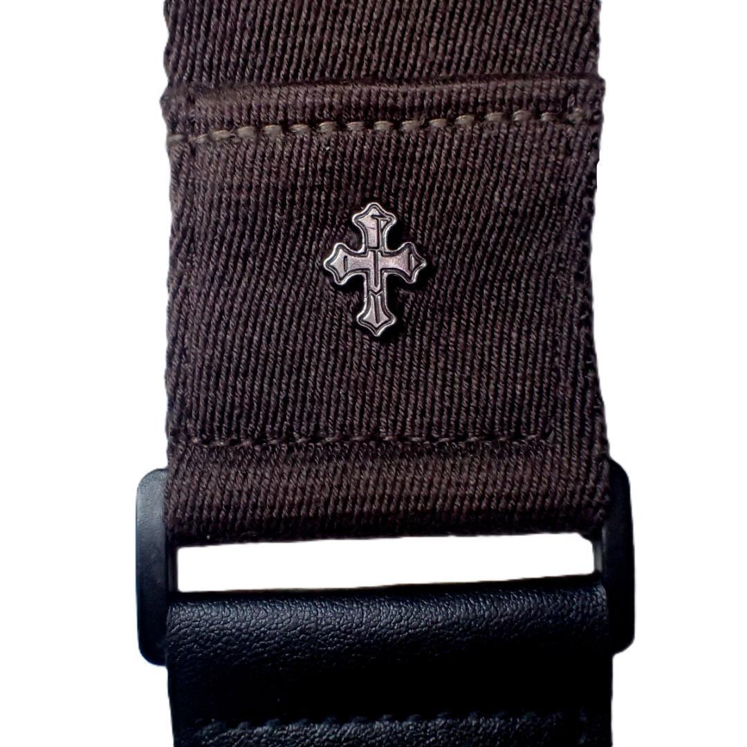 クロスモチーフ 十字架 ギター ストラップ ボタン付き アコギ アコースティックギター エレキギター フォークギター ベース 茶色