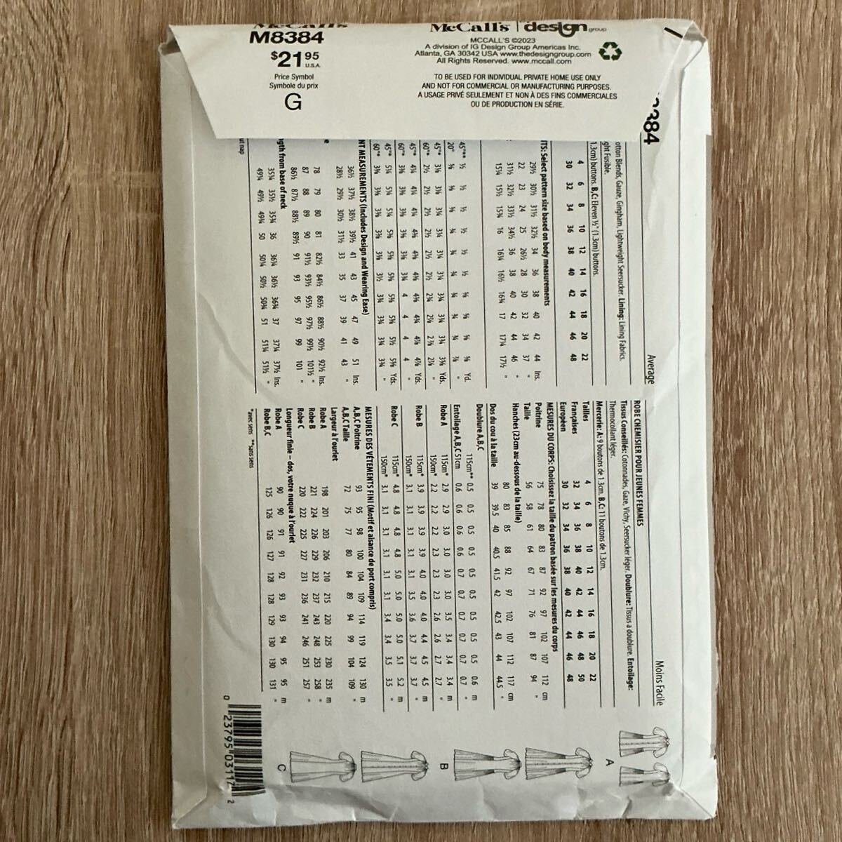 McCall’sのワンピースの型紙です。