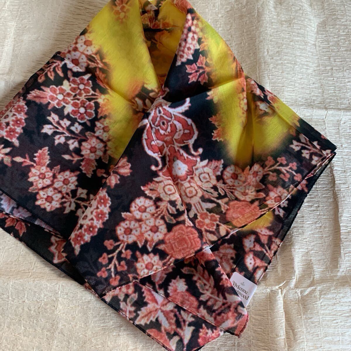 透け感のある薄手の素材です。大判なのでスカーフ等様々な使い方可能です。