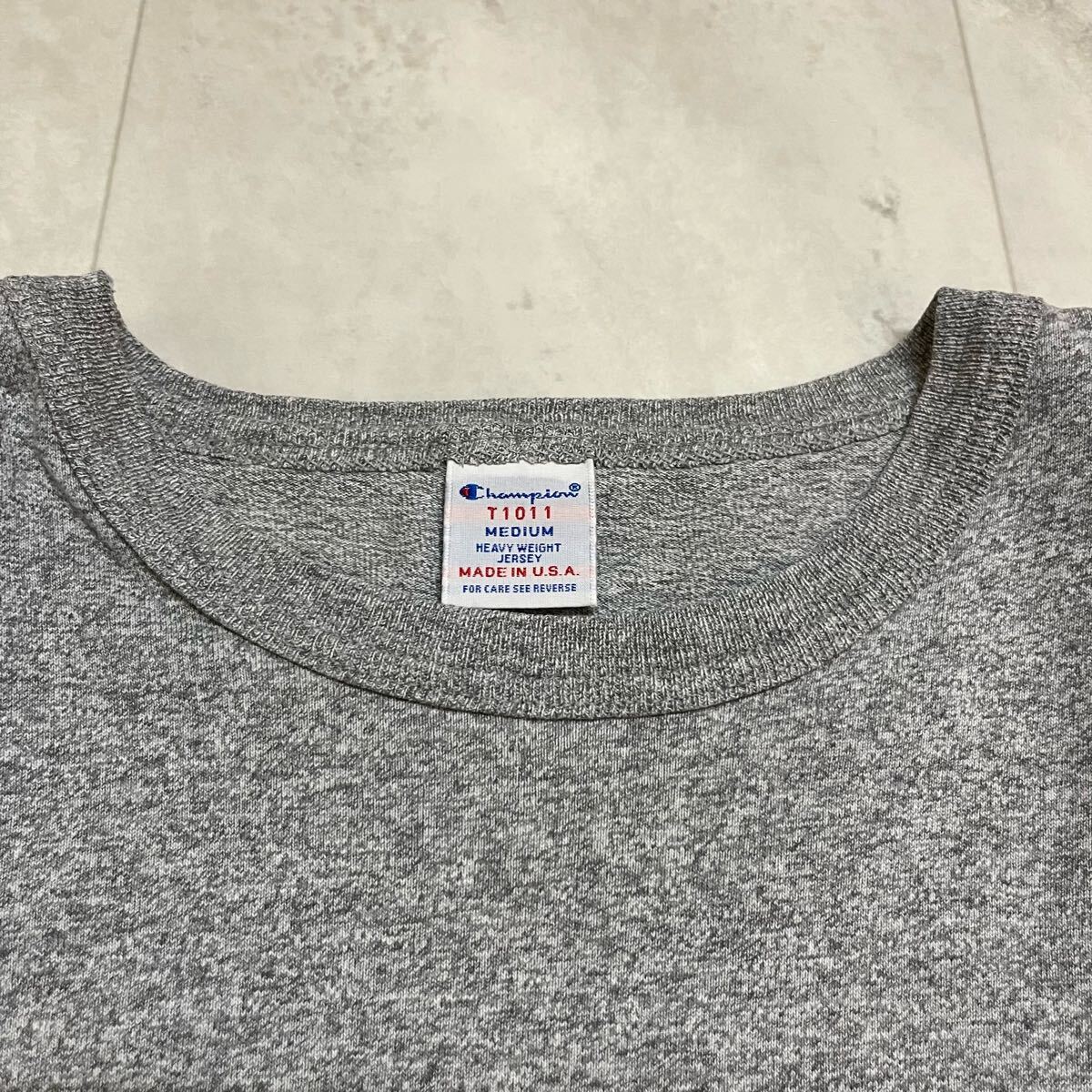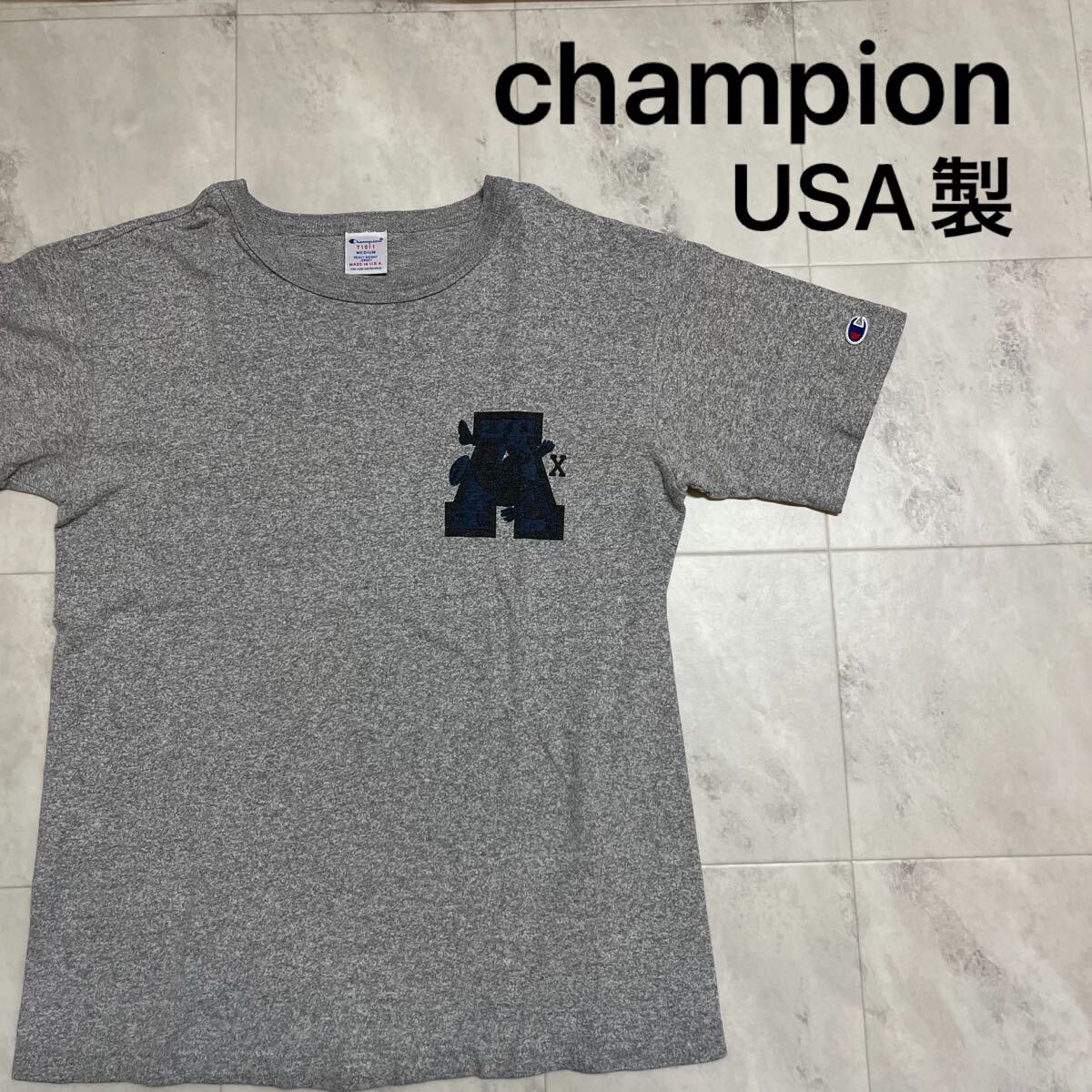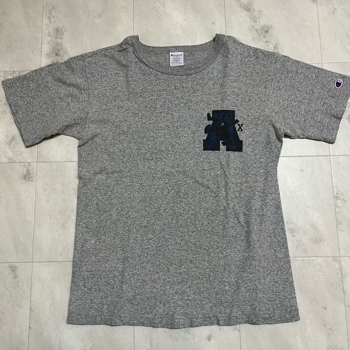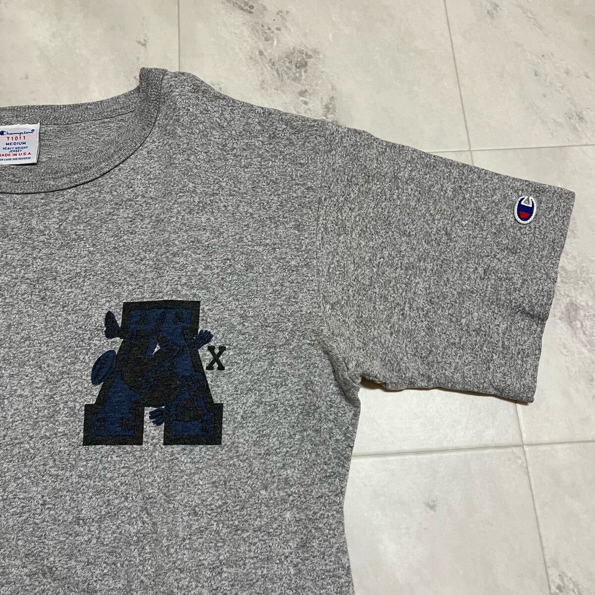 USA製 Champion チャンピオン A Bathing Ape ベイシングエイプ コラボ T1011 Tシャツ 半袖 プリントシングルステッチ グレー M 玉mc3924