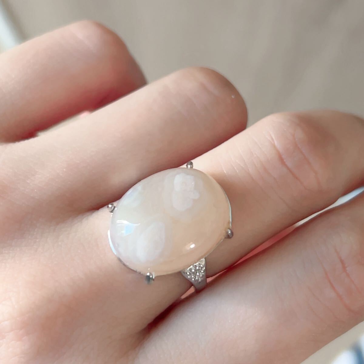 ◇桜瑪瑙◇指輪◇リング◇フリーサイズ◇チェリーブロッサムアゲート◇天然石◇パワーストーン◇巾着袋つき◇プレゼントにも038R7193