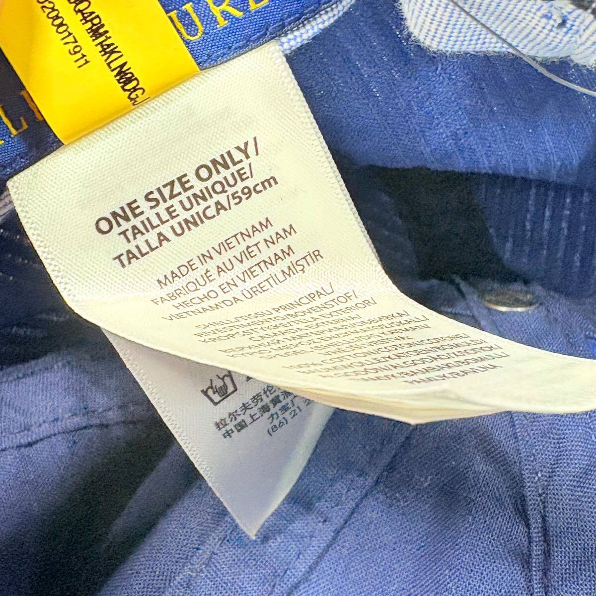 59cmですが調節で61〜62cmほどの大きめまで十分着用可能です。深めのデザインではございません。配色はブルーですがネイビーブルーが近いかと思います。 ※入札や落札にあたり必ず下記をお読みの上ご理解頂ける方のみお願い致します