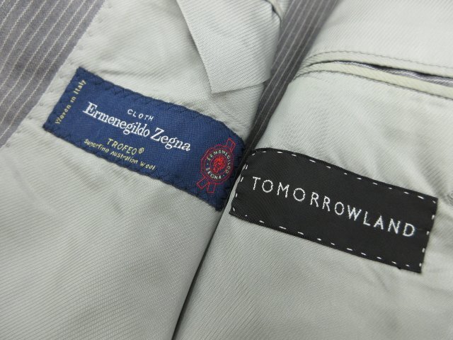 HH【トゥモローランド TOMORROWLAND】61-06-81-06105 ゼニア TROFEO生地 3B段返り スーツ (メンズ) 48 グレー ストライプ柄◇32RMS1783◇