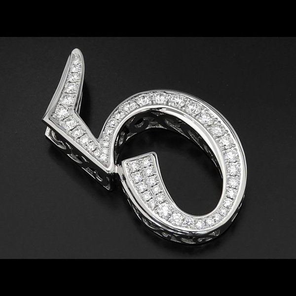 商品説明 | 数字の「5」をモチーフにした大きめペンヘッドです。普通の大きさでは物足りない、胸元に大きなアクセントが欲しい方にピッタリです。質の良い3カラット分のダイヤモンドを贅沢に使用しております。 |