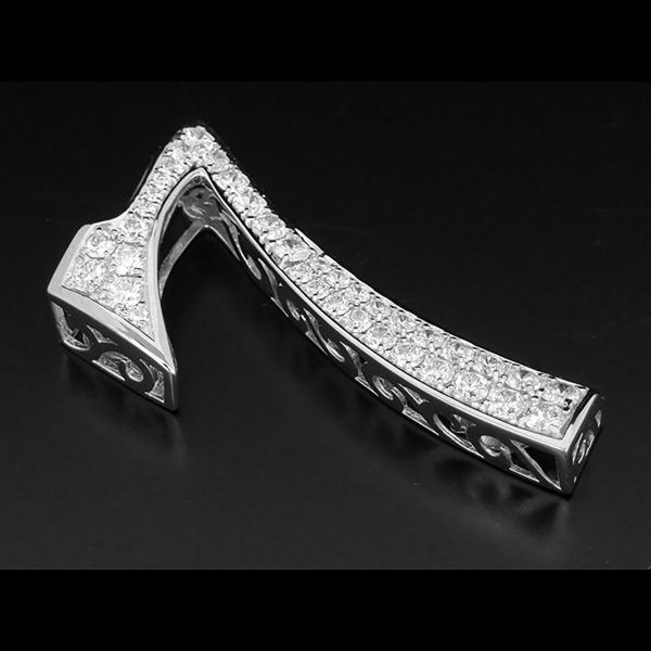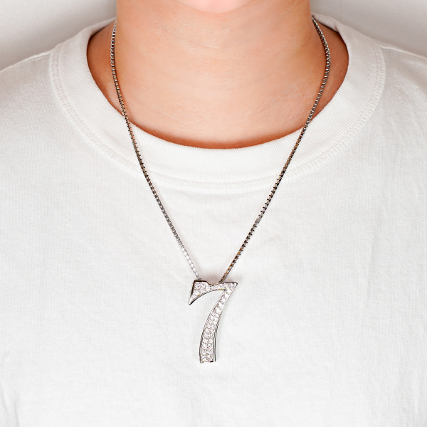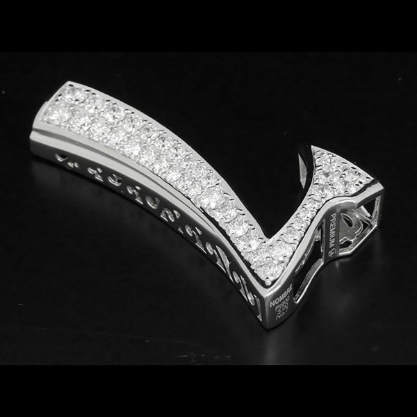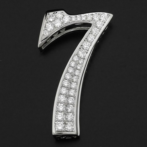 商品説明 | 数字の「7」をモチーフにした大きめペンヘッドです。普通の大きさでは物足りない、胸元に大きなアクセントが欲しい方にピッタリです。質の良い3カラット分のダイヤモンドを贅沢に使用しております。 |