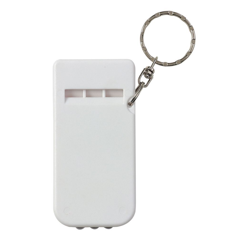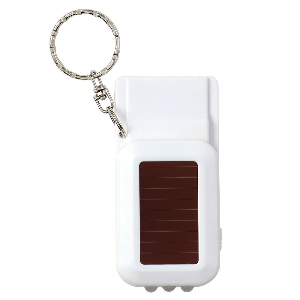 ソーラー電池で点灯するLEDライト付のホイッスルです。キーホルダーになっているので、バッグなどにつけることができます。最大点灯時間:1時間。