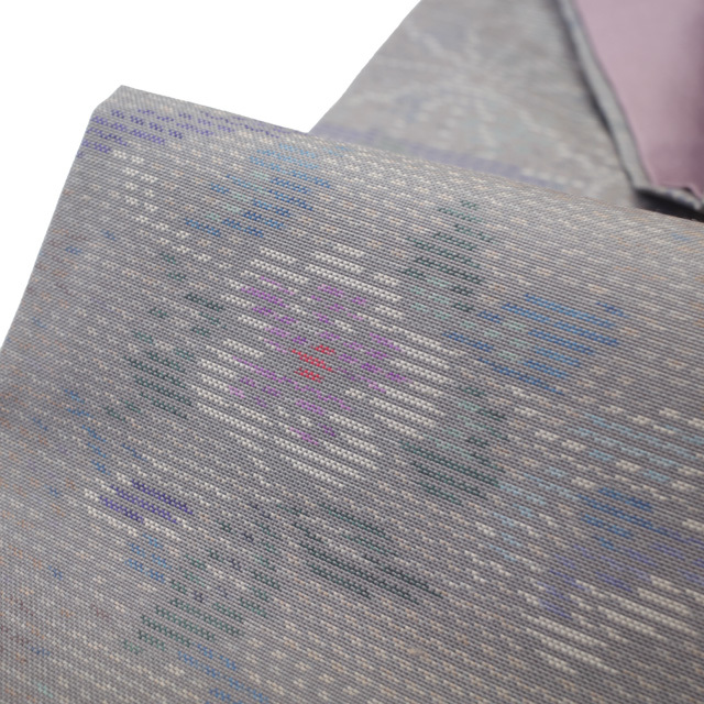 【中古】 すごい値! 本場大島紬 リサイクル 着物 袷 正絹 横双 織絣 グレー 灰紫 麻の葉 花 カジュアル 大島 大島紬 中古 仕立て上がり 身丈161 裄丈66.5 Mサイズ 春 秋 冬 リサイクル着物 中古 大島紬 普段着 カジュアル着物 観劇 お食事 ショッピング お出かけ など カジュアルシーンに たとう紙付き 送料無料 30代 40代 50代 60代 ~ 販売 購入 リユース すごいね みやがわ nek01492