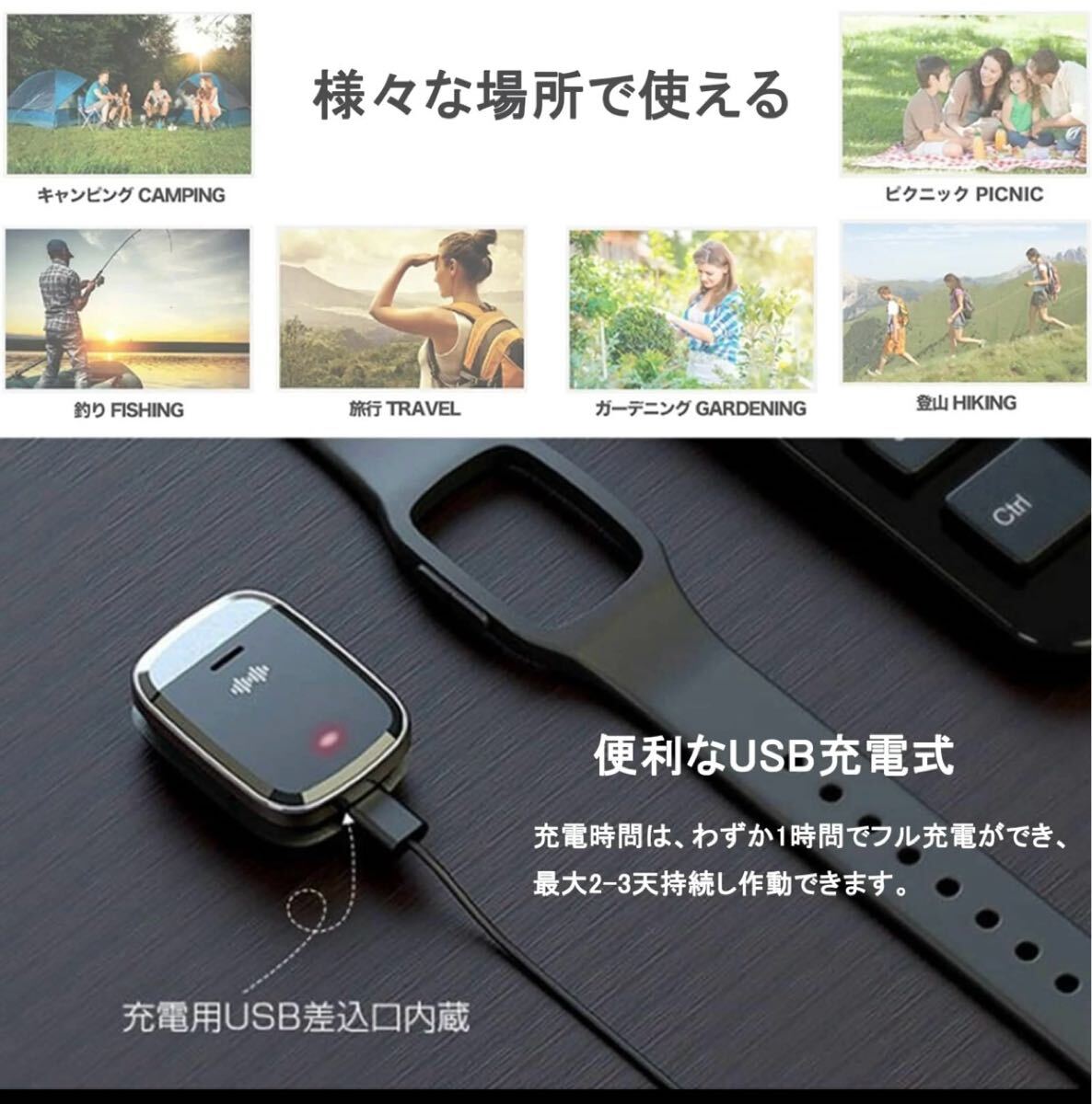 長寿命: 蚊よけリストバンドウォッチのスタンバイ時間は 6 か月、フル充電で 4 日間連続動作でき、耐久性は 150 時間です。