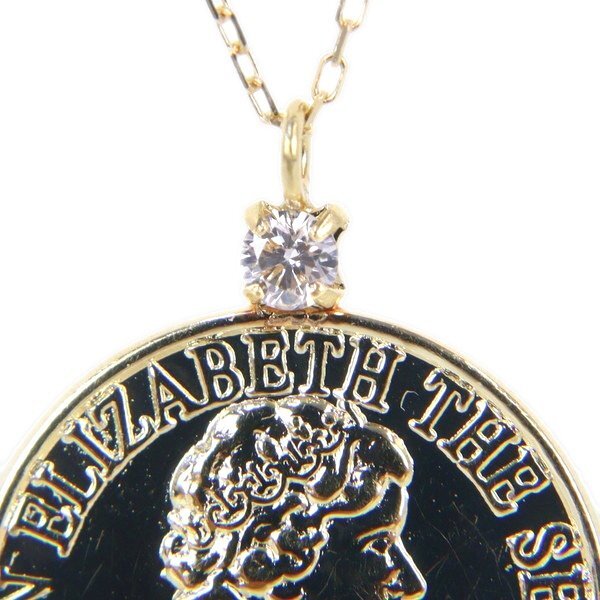 Aランク【ジュエリー】コインネックレス/K18YG//40cm/0.9g/0.03ct/ダイヤモンド
