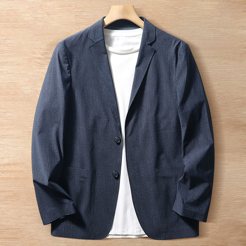 T8900-M ブルー 新品 サマー ブレザー 防シワ ジャケット メンズ 背抜 薄手 シームレス 接着 仕上げ  ライトアウター 春夏 ストレッチ テーラードジャケット