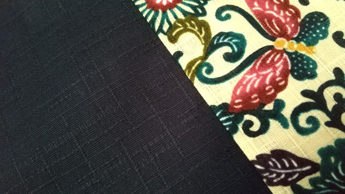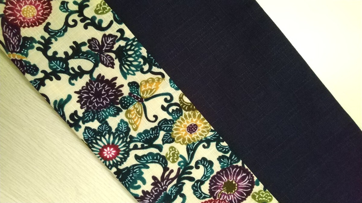 紺色(濃紺)生地は紬のように糸がポコポコ浮き出ていて紬っぽいです。