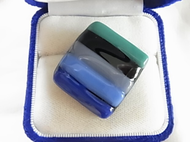 ▲ビンテージ/ヴィンテージ 2way 焼き物系 素敵な和モダンテイスト 涼しそうな印象のブルートーンに寒色系色 艶感光沢感 ブローチ