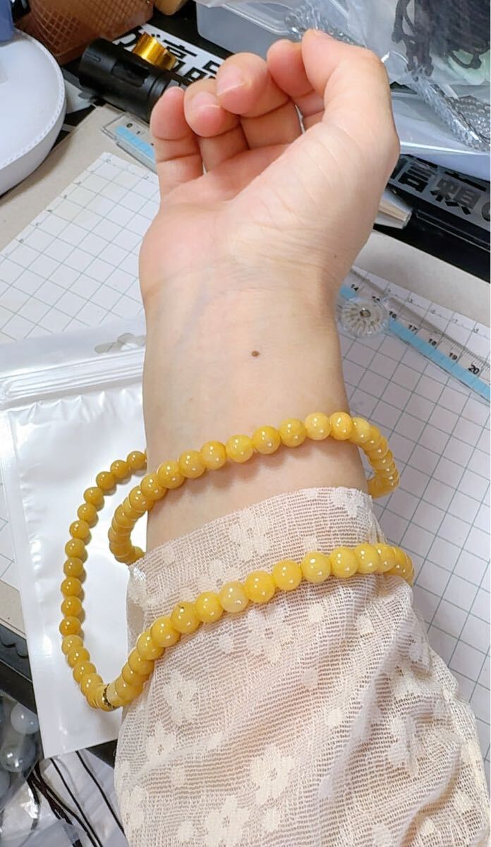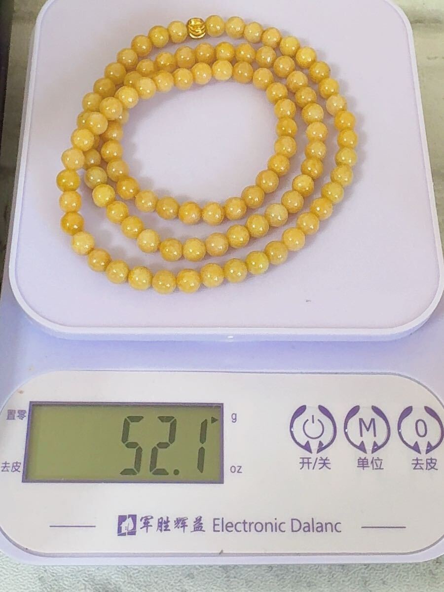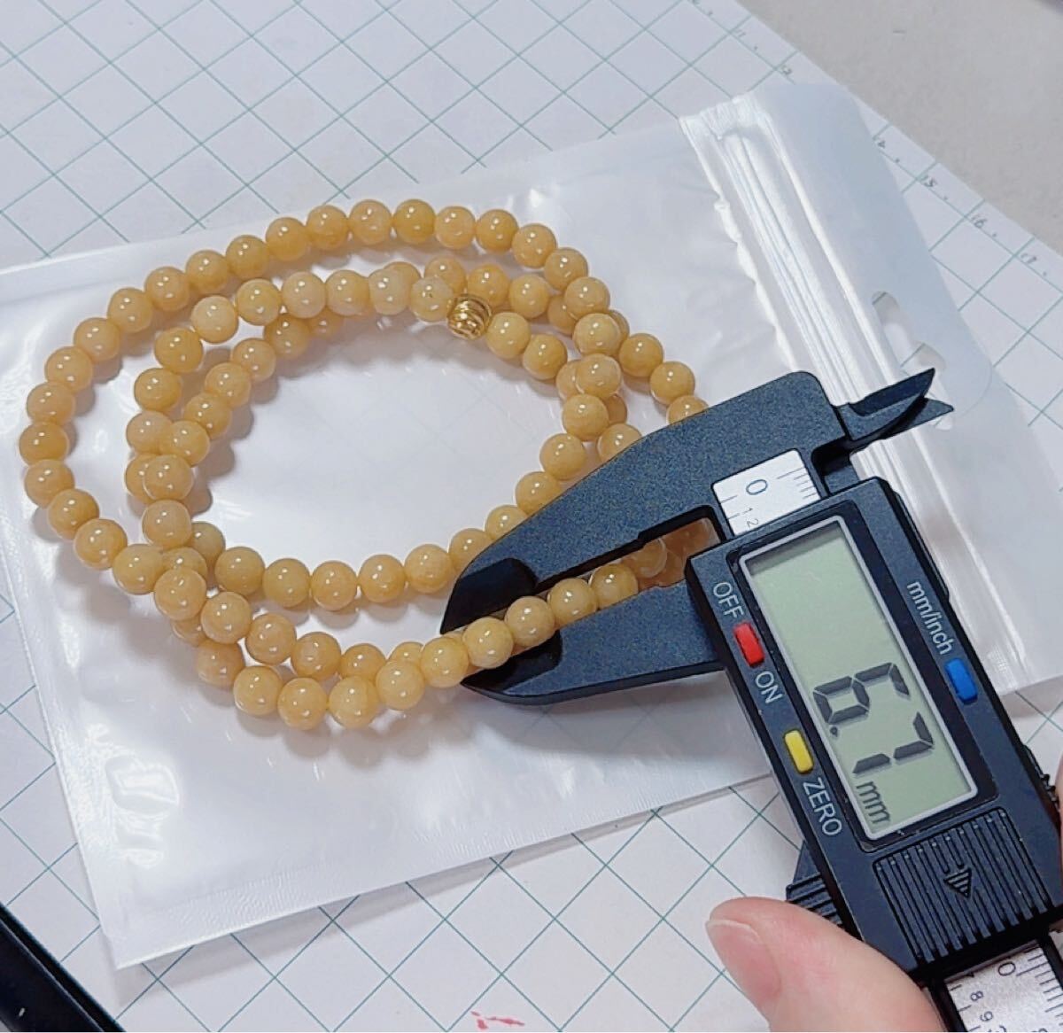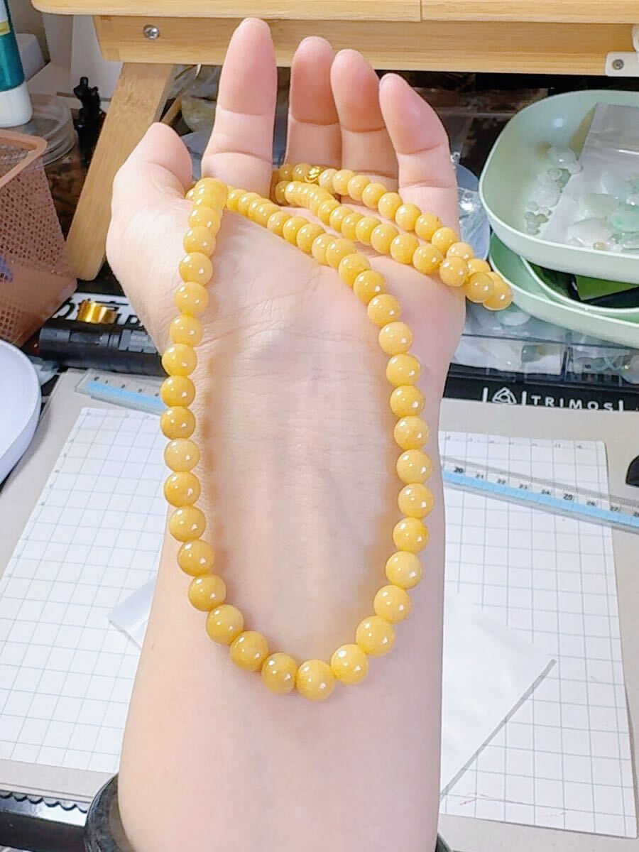 R2-01585天然本翡翠《本物保証》黄翡翠 上品な生姜色 ネックレス約60cm 天然石6.7mm 宝石 一点物 超希少 縁起物 お守り パワーストーン