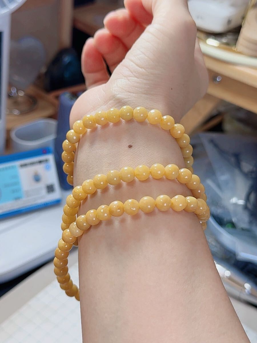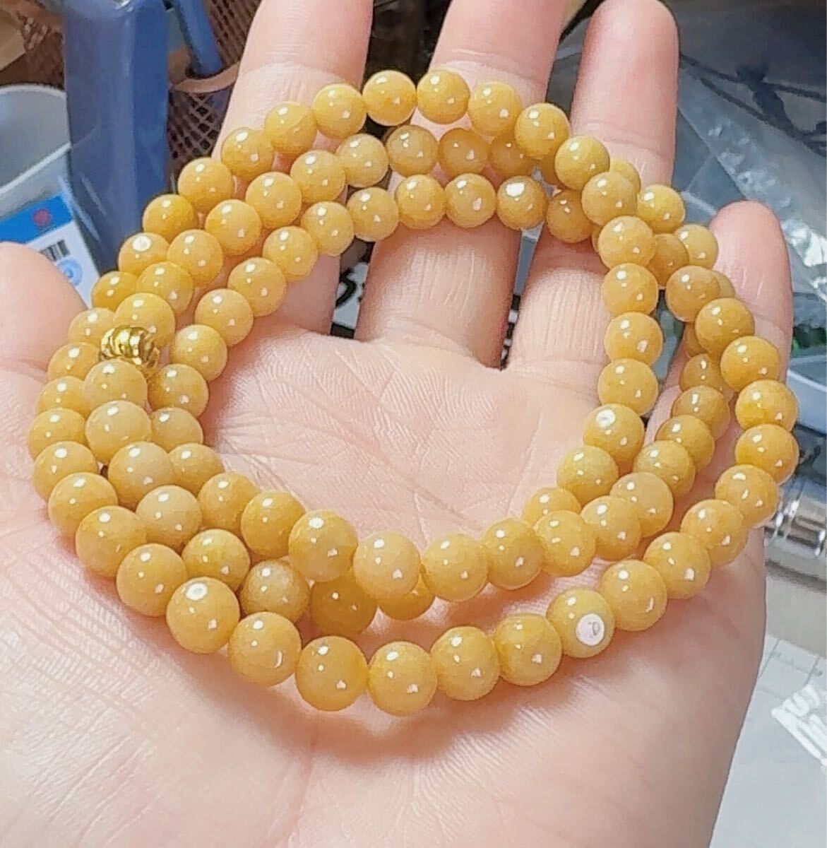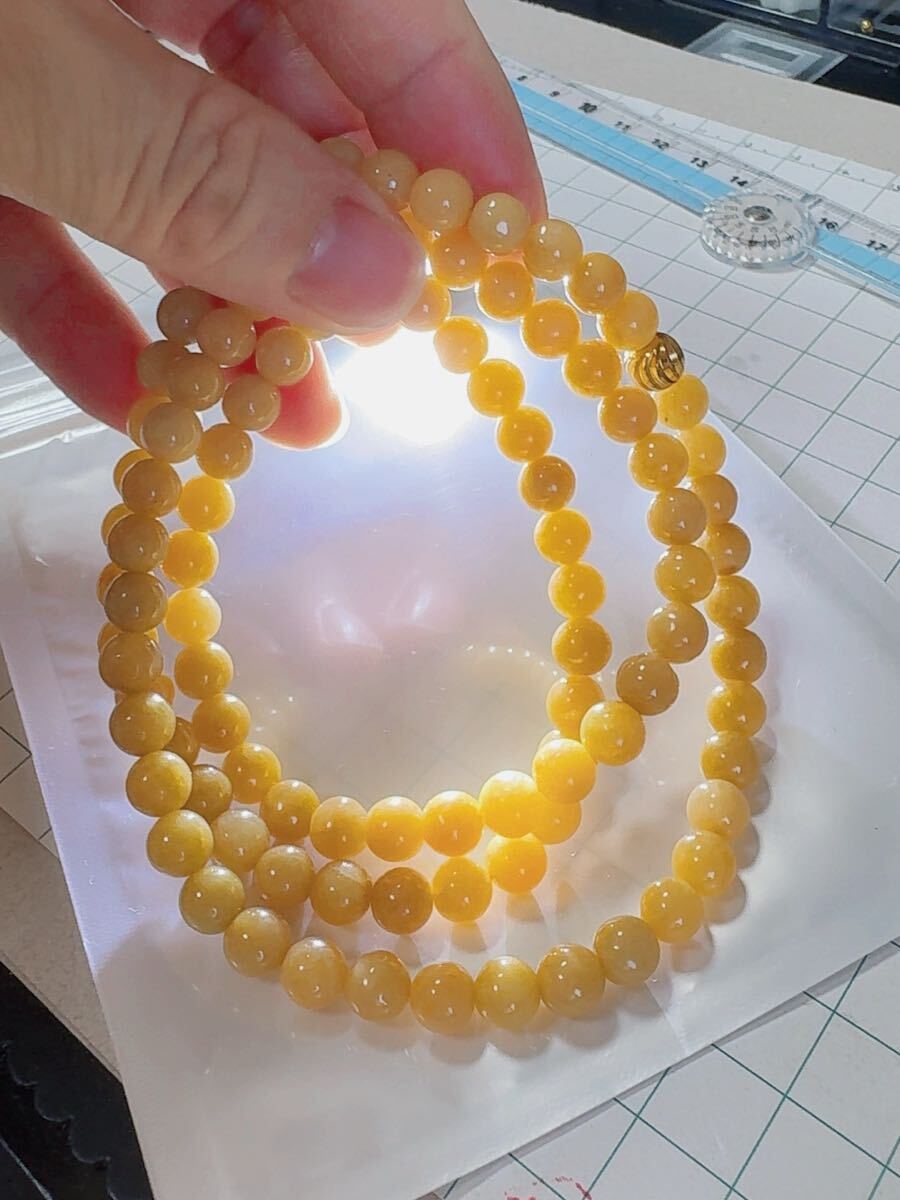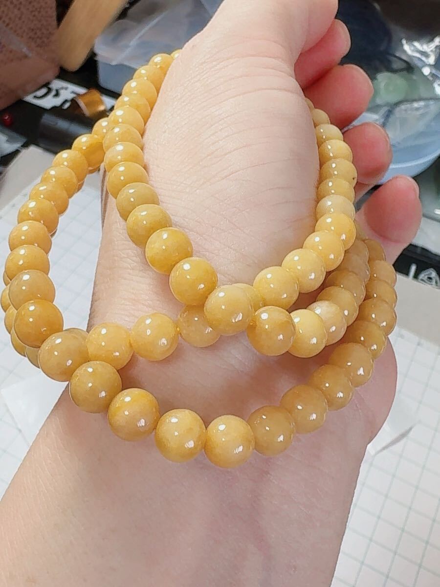 R2-01585天然本翡翠《本物保証》黄翡翠 上品な生姜色 ネックレス約60cm 天然石6.7mm 宝石 一点物 超希少 縁起物 お守り パワーストーン