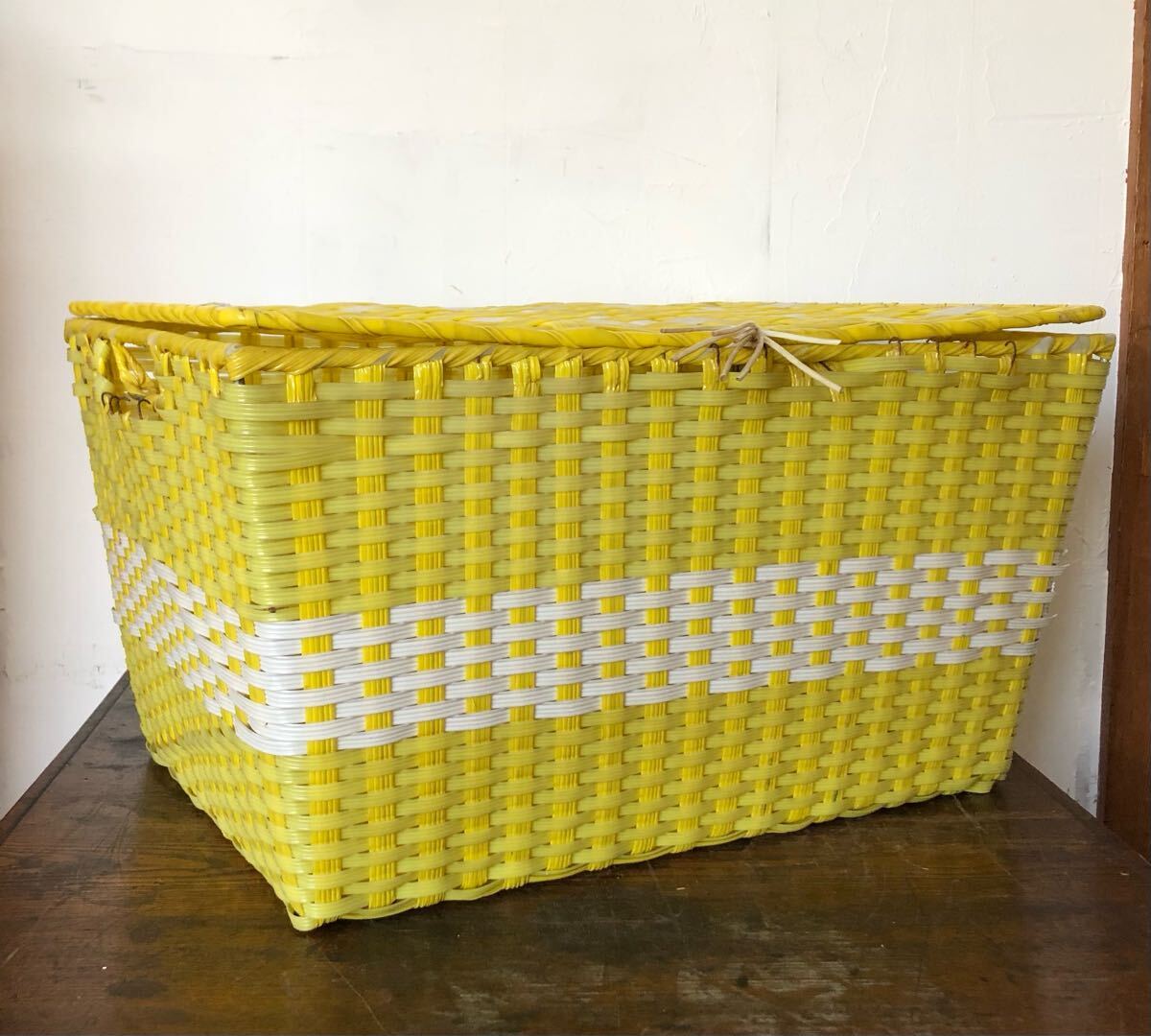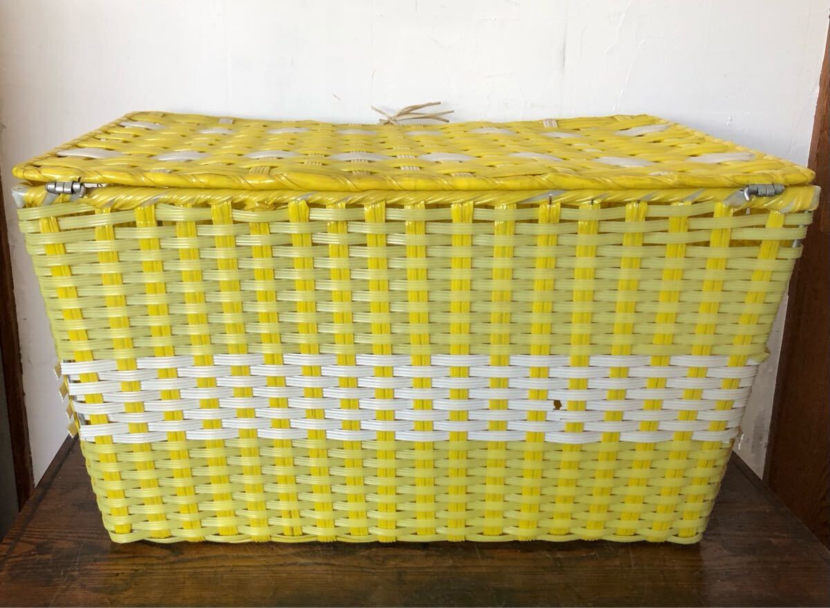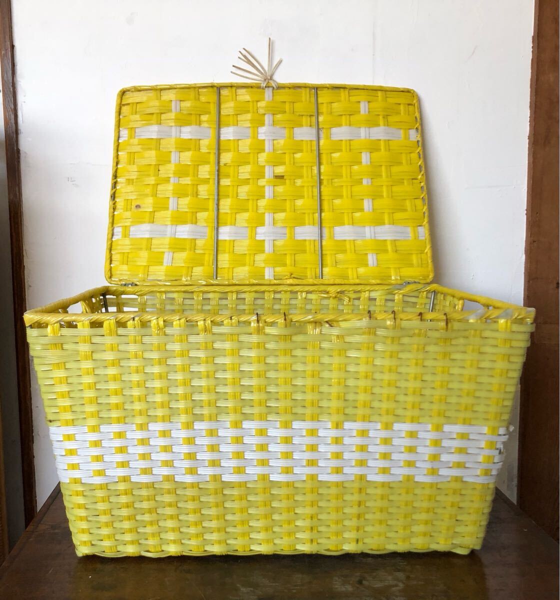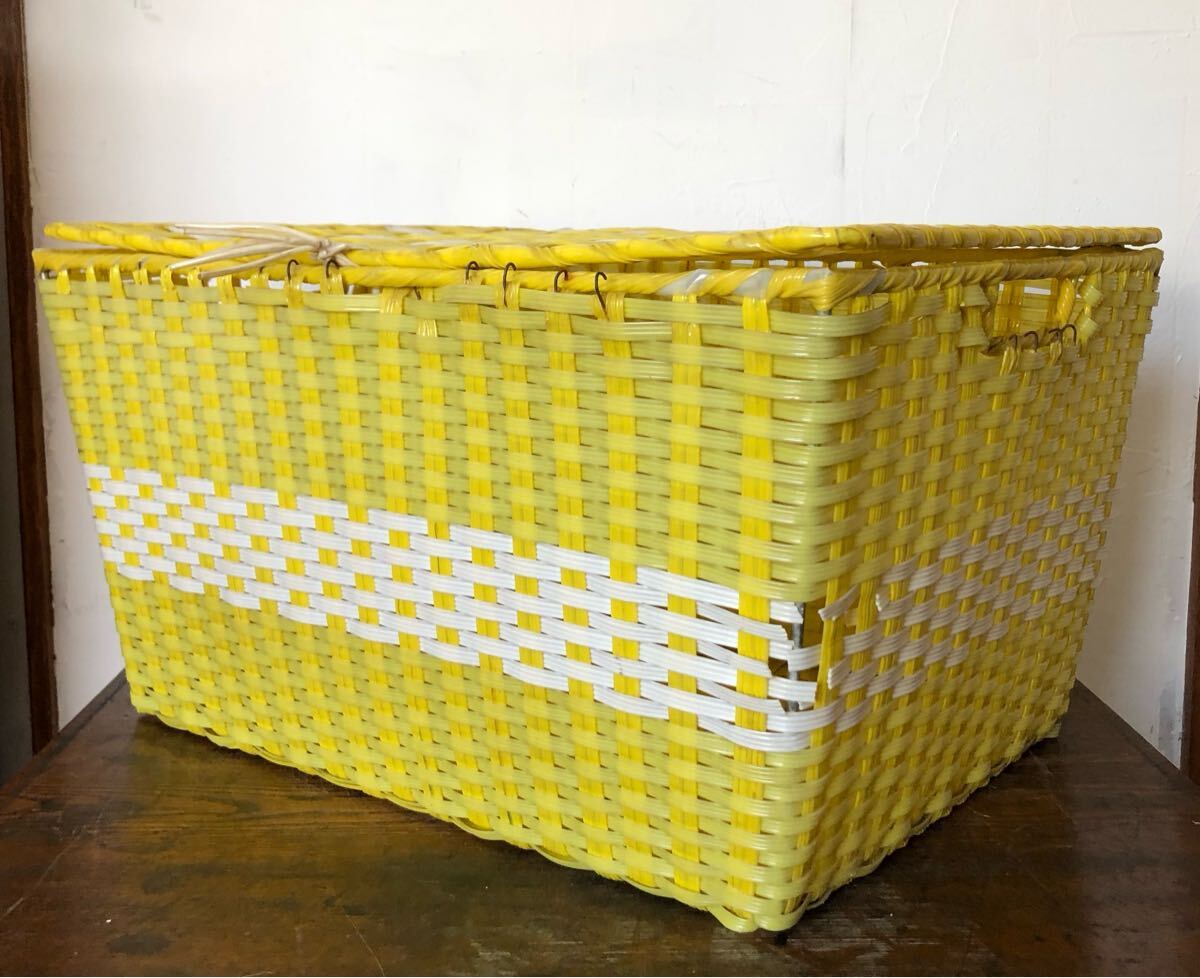 商品名 : 昭和レトロ バスケット/ビニールカゴ/蓋付き/ 収納/道具箱/ インテリア/雑貨