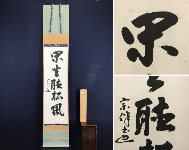 真作/表千家/永田宗伴/一行書/閑坐聴松風/茶道具/茶掛/禅語/掛軸☆宝船☆AJ-688