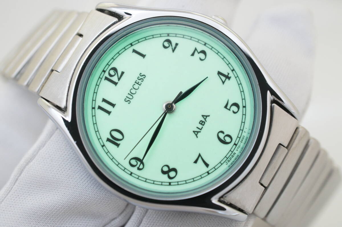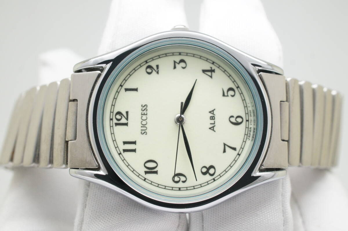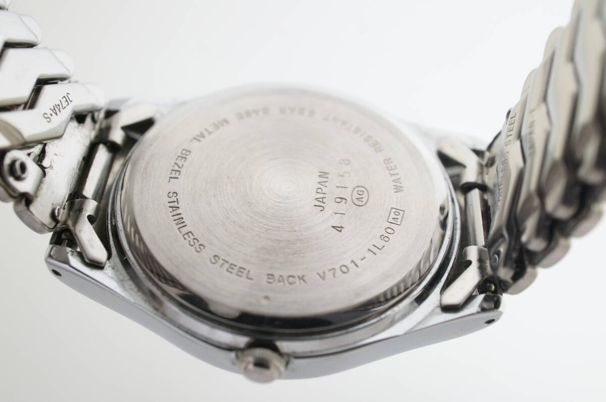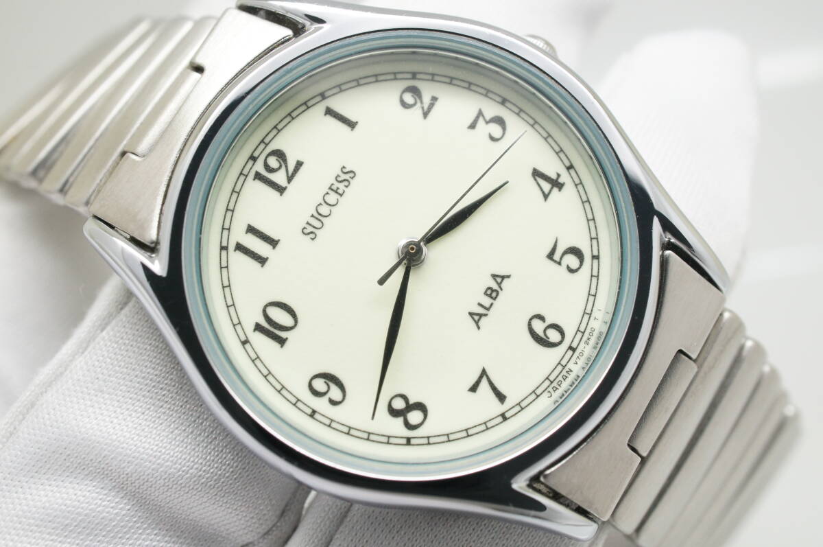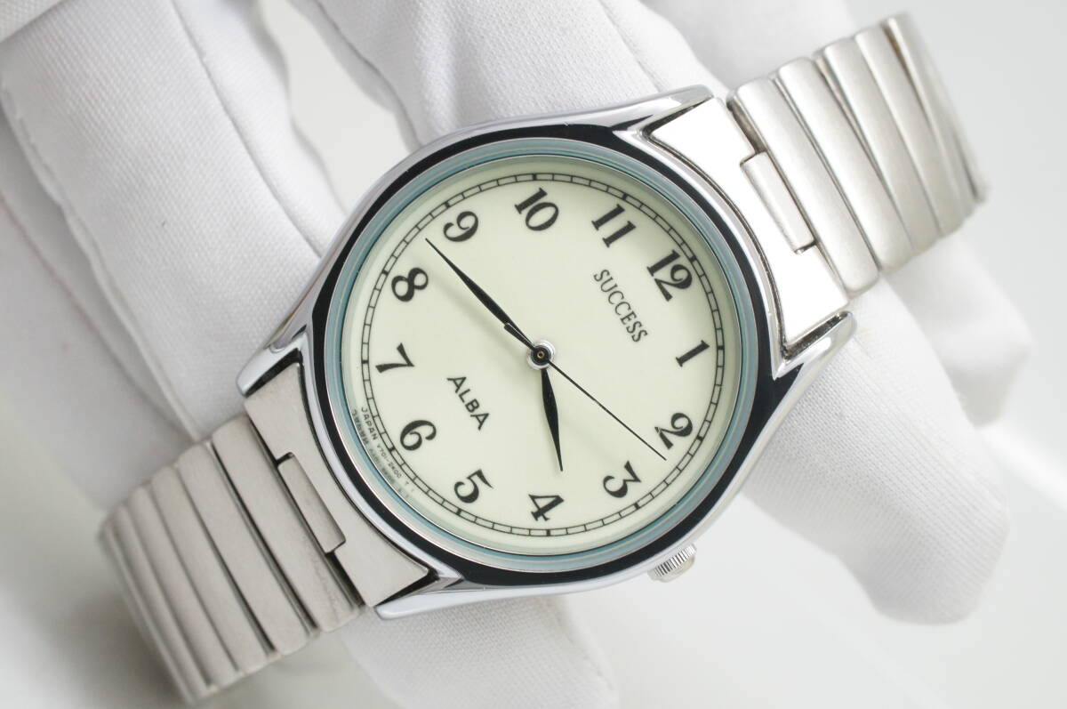 G108●作動良好 SEIKO セイコー ALBA アルバ V701-1L60 蓄光文字盤 全アラビア数字 メンズ腕時計 シルバー お洒落 クォーツ