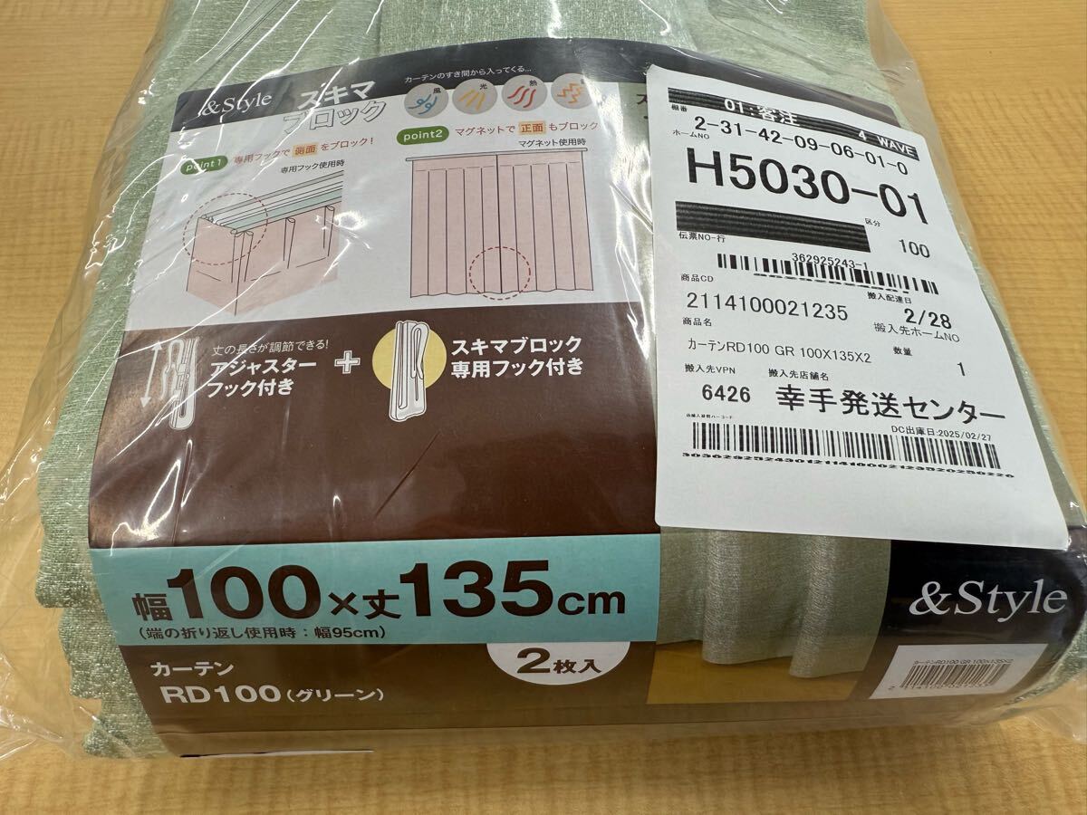 ★ nB 80 &Style ニトリ カーテン 幅100×丈135cm 2枚入 RD100(グリーン) インテリア NITORI ※未使用長期保管品 ★