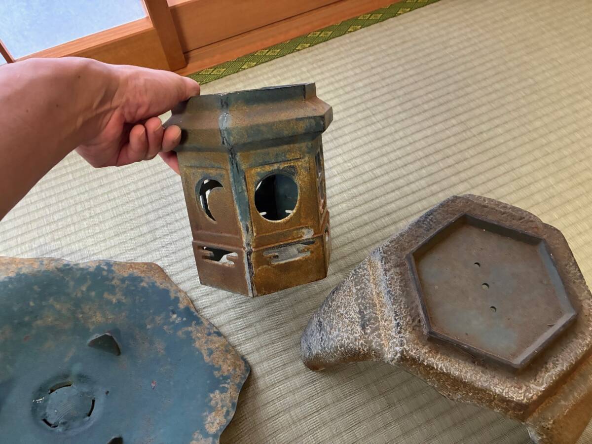 | 灯篭 透かし 3つ足 3段分割 高さ約40cm 重厚 鉄製品 | |
