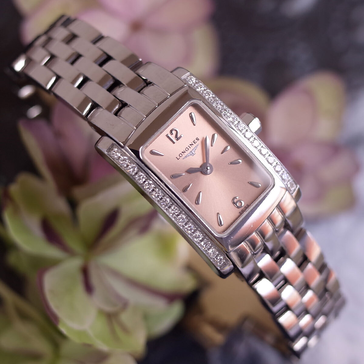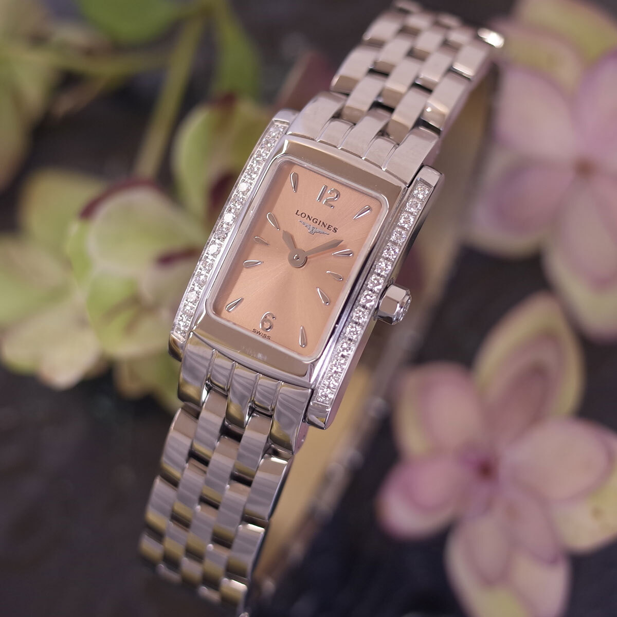 | 放射状に光沢が広がる大人ピンクが上品なフェイスにしずく型の愛らしいインデックス 両サイドのダイヤベゼルのきらめきで、華やかにお手元を演出してくれます。 小さめのダイヤルのため、派手過ぎず、オンオフ問わずデイリーウォッチとしても楽しめる逸品です。 |