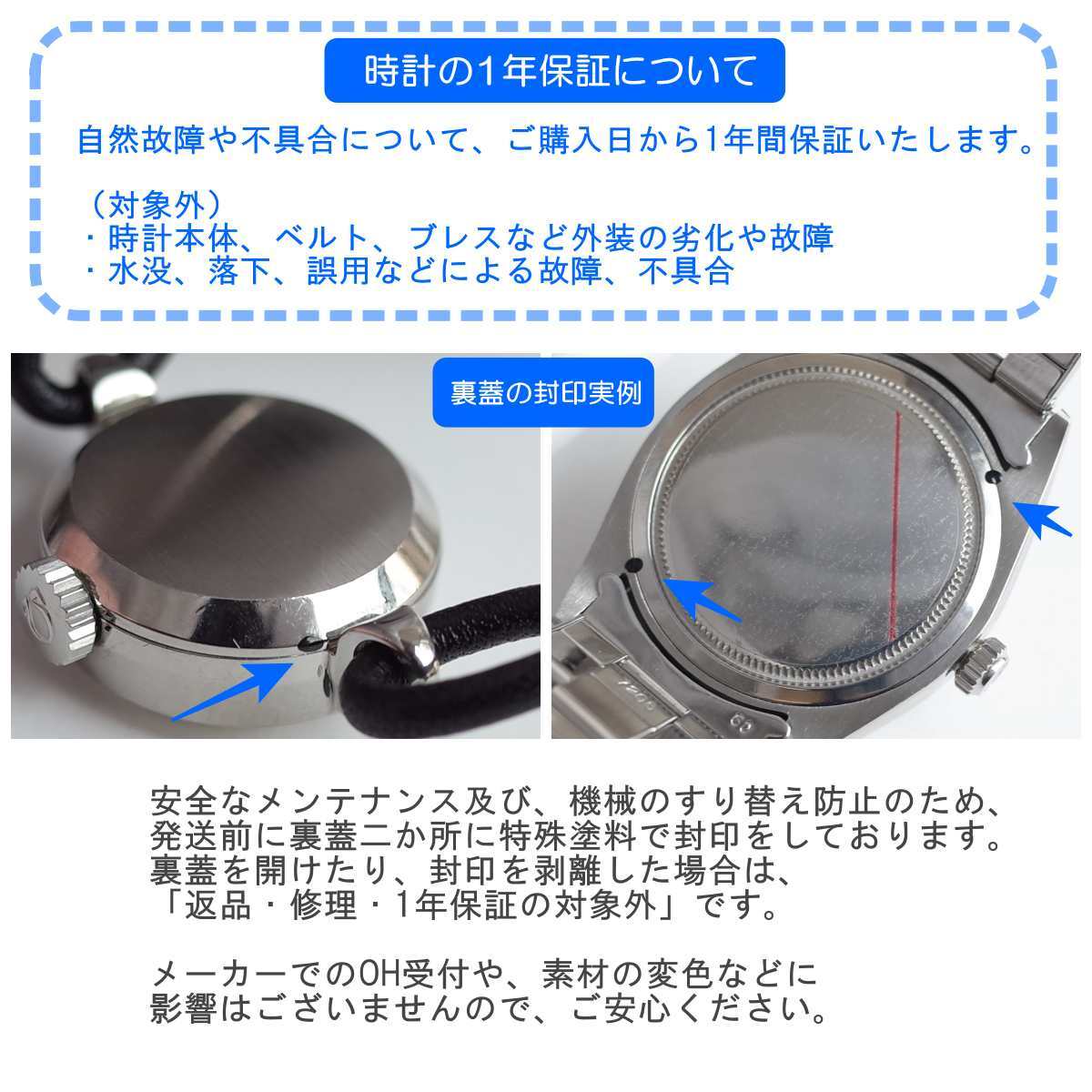 | 備考 | ◆発送前に動作の最終点検をいたしますので、発送までに数日いただく場合がございます。予めご了承ください。 ◆裏蓋二か所に特殊塗料で封印しております。裏蓋を開けられた場合には返品、修理をお受けできませんので、くれぐれも御注意下さい。 (安全なメンテナンス及びすり替え防止のため) ・背面に赤いラインの保護シールが貼付してある場合があります。ご使用時にはお剥がしください。 ・ヴィンテージの取り扱いについては簡単な説明文を商品と一緒に同送しております。 ・中古のお品は多少の使用感をご了承の上、商品の状態を十分にご確認いただいてから、ご購入ください。 ・パソコンによっては実物と色が異なる場合があります。 ・実店舗にて同時販売のため、タイミングによっては、売り切れの場合がございます。予めご了承下さい。 |