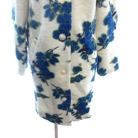 ミリオンカラッツ Million Carats ノーカラーコート ロング 総裏地 花柄 ウール S アイボリー 白 ホワイト /AU レディース