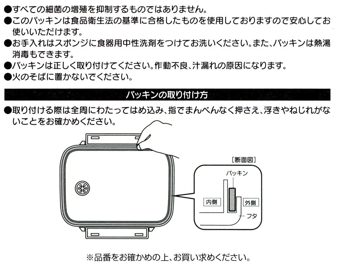 説明 「スケーター」社製品のランチボックスPMF5AG PMF5専用部品 欲しい商品と一緒に交換用パッキンを購入しておけばいざという時にも安心 パッキンが劣化したとき、紛失したときなどのスペアとしてお使いください。 熱湯消毒もできます耐熱温度140°