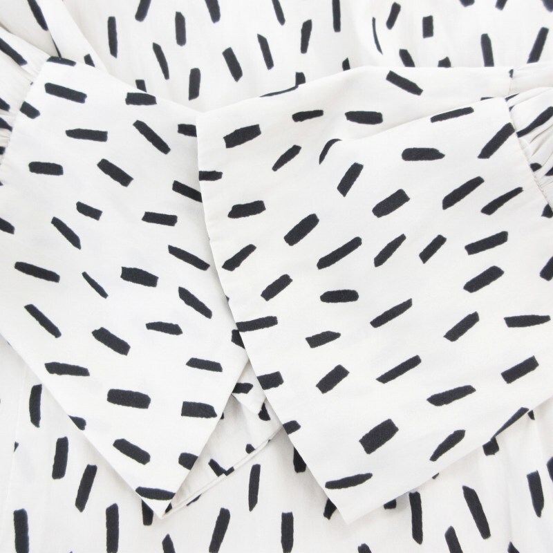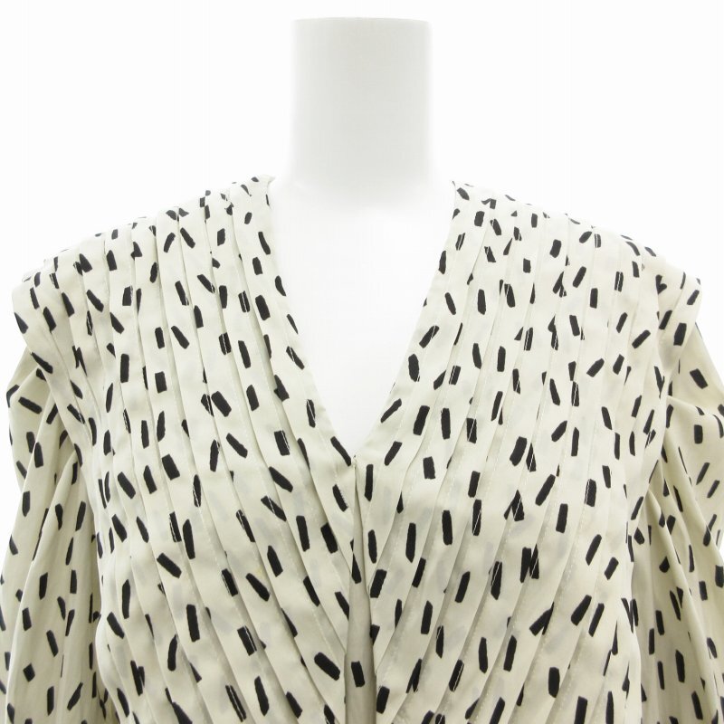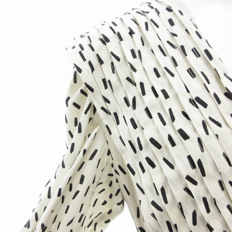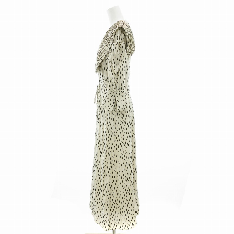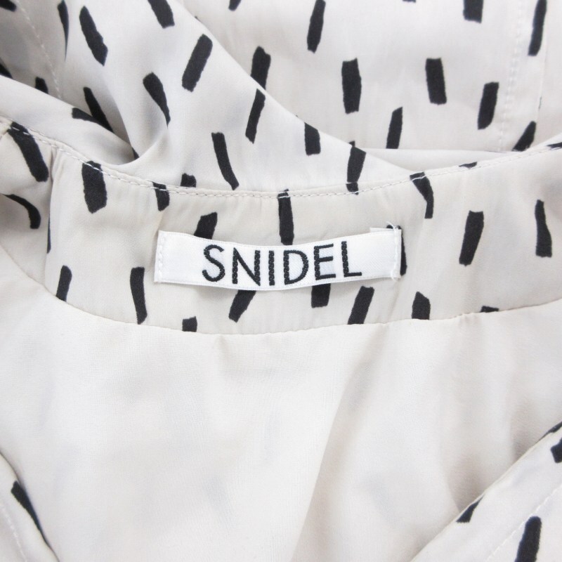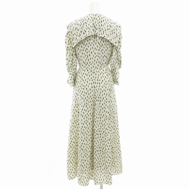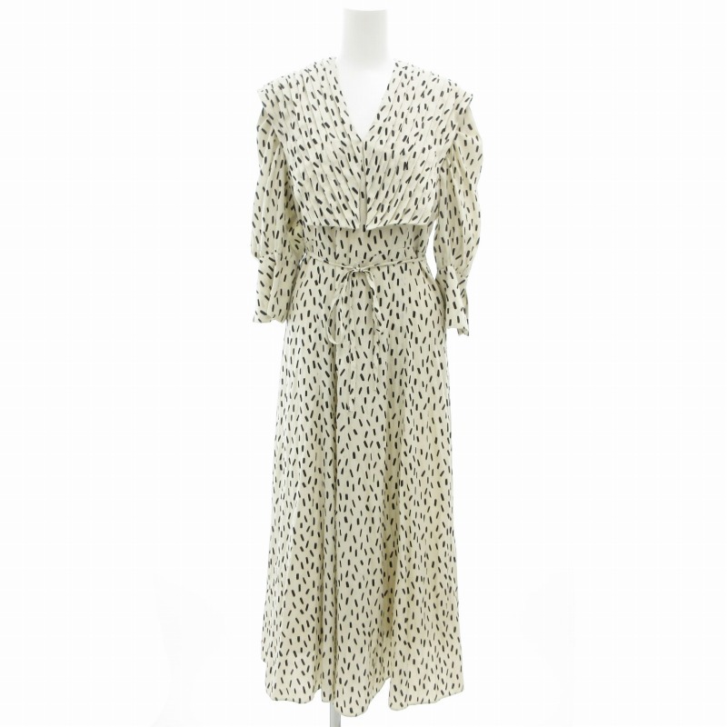 スナイデル SNIDEL 21AW ビッグカラークラシカルワンピース 七分袖 ロング ウエストリボン Vネック 総柄 0 白 ホワイト