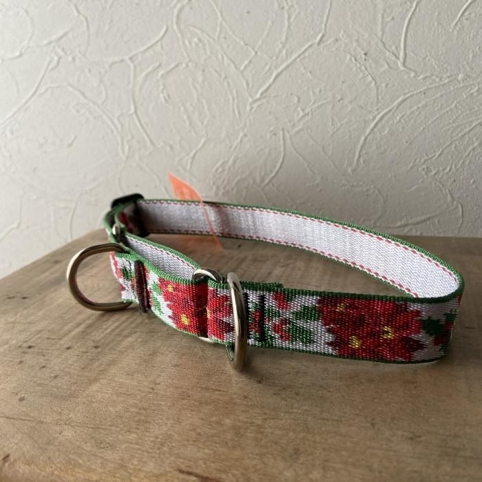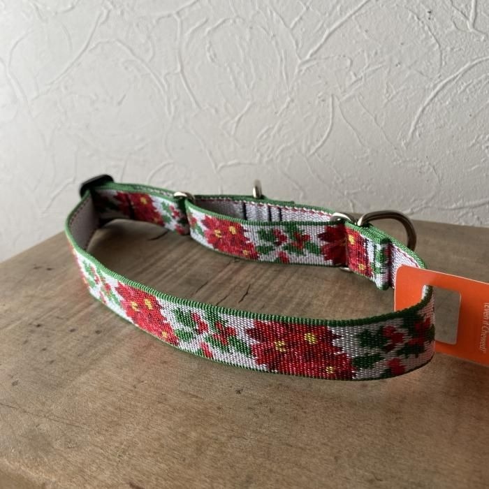 引っ張り防止や訓練の合図を送るのに役立つトレーニング用のハーフチョークカラー、マーチンゲールです。
