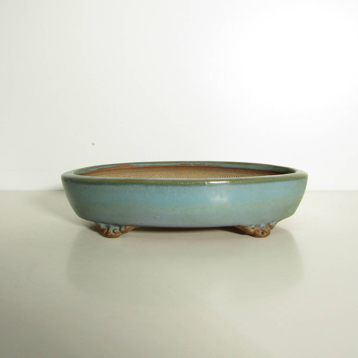 『 美芸 緑釉雲脚楕円鉢 ( 美芸造 )』AA1/ 盆栽鉢 楕円形鉢 小品盆栽 鉢 山野草鉢 植木鉢 和鉢 盆器 /【 盆栽用品・鉢 】