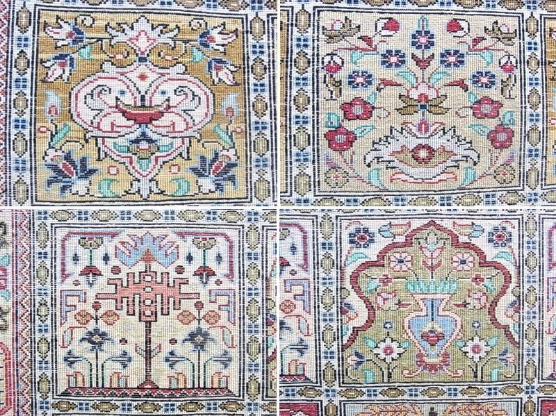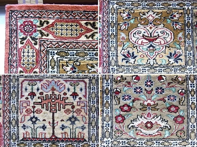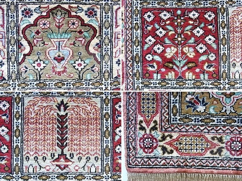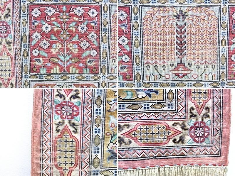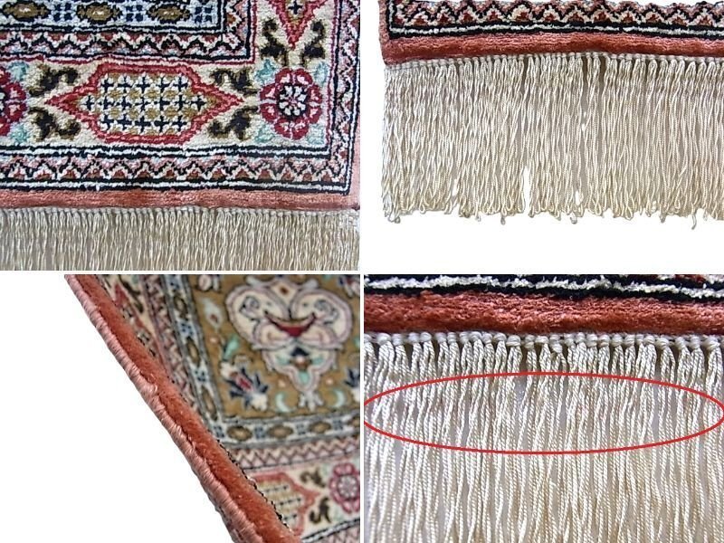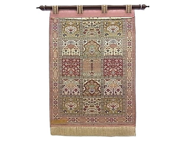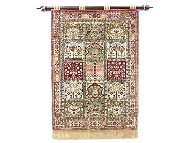 e13623 ペルシャ絨毯 タペストリー シルク コム産 壁掛け フリンジ 約57.5*80㎝