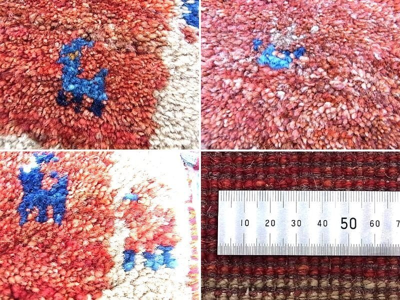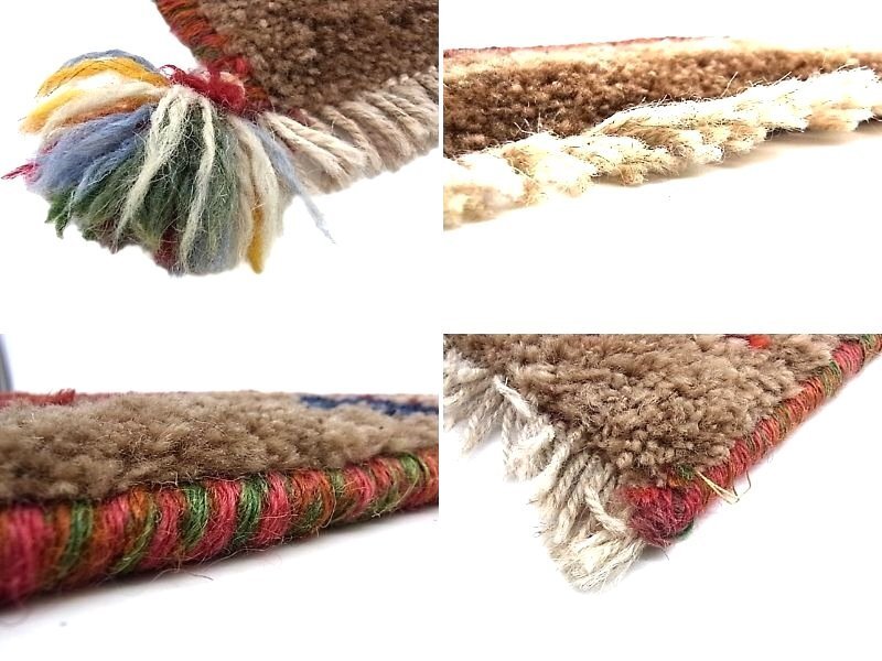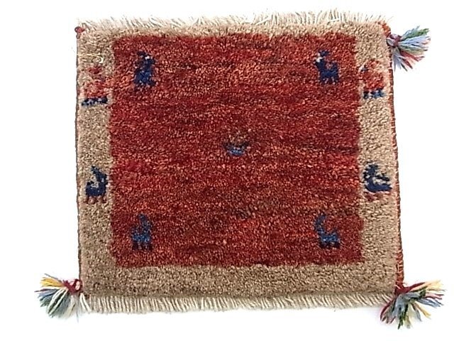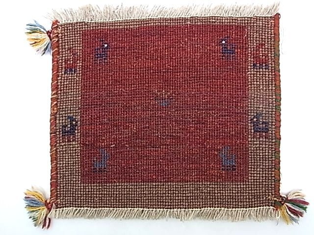 e13020 ギャッベ ラグ マット 小ぶり 赤茶*ベージュ フリンジ 42*35㎝ 難あり