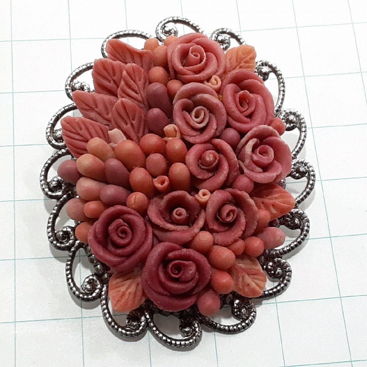 送料無料)ビンテージ☆薔薇モチーフ☆アンティーク ブローチ A30982