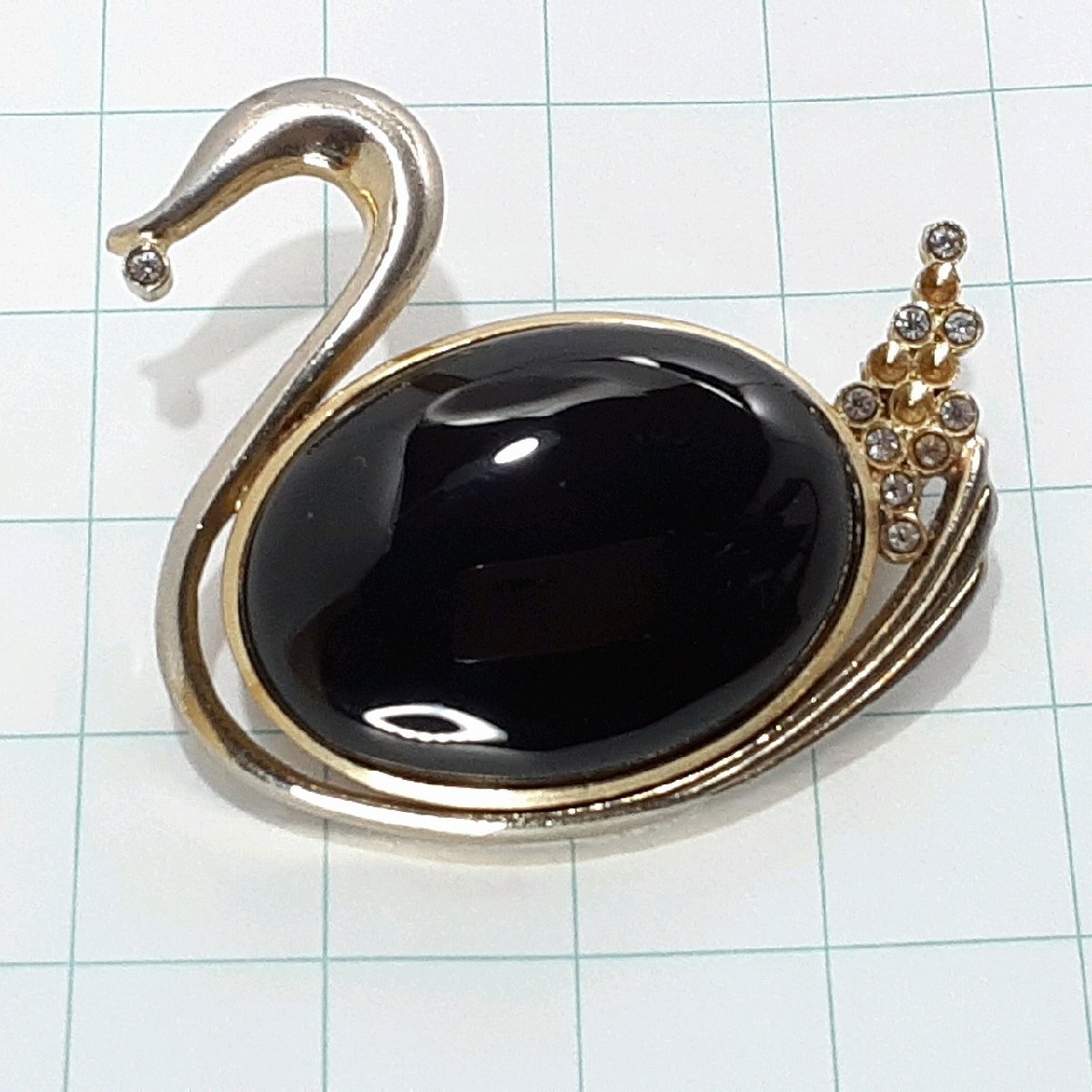 送料無料)ビンテージ☆水鳥 ブラックストーン☆アンティーク ブローチ A30788